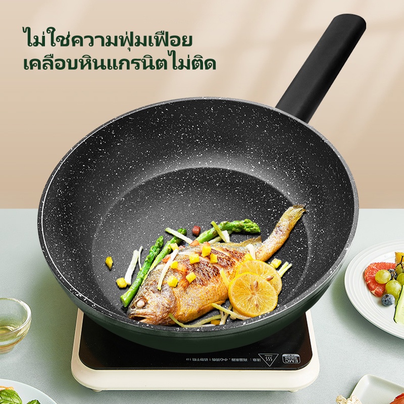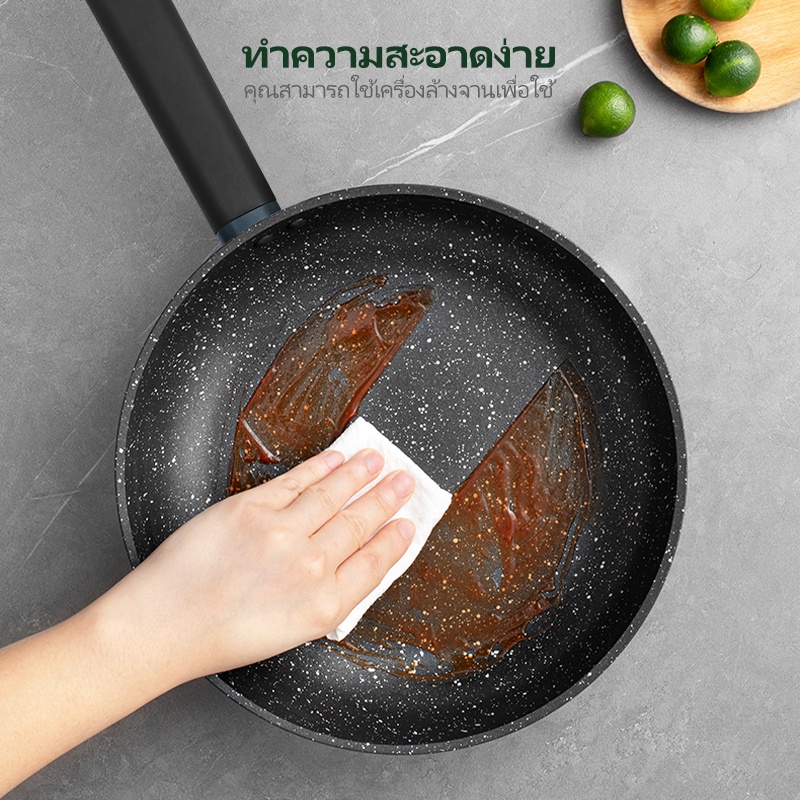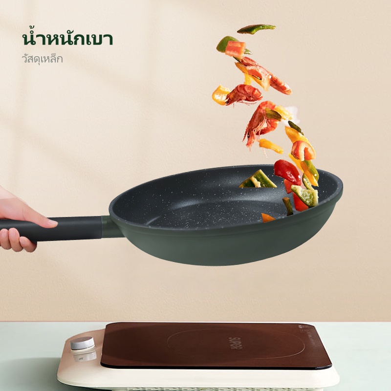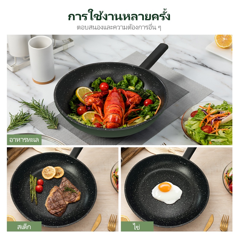 TJean【🚚ได้รับสินค้าภายใน 3วัน】26ซม กระทะ กระทะทำกับข้าว ไม่ติดกระทะ เตาแม่เหล็กไฟฟ้า เตาแก๊ส กระทะหินอ่อน nonstick