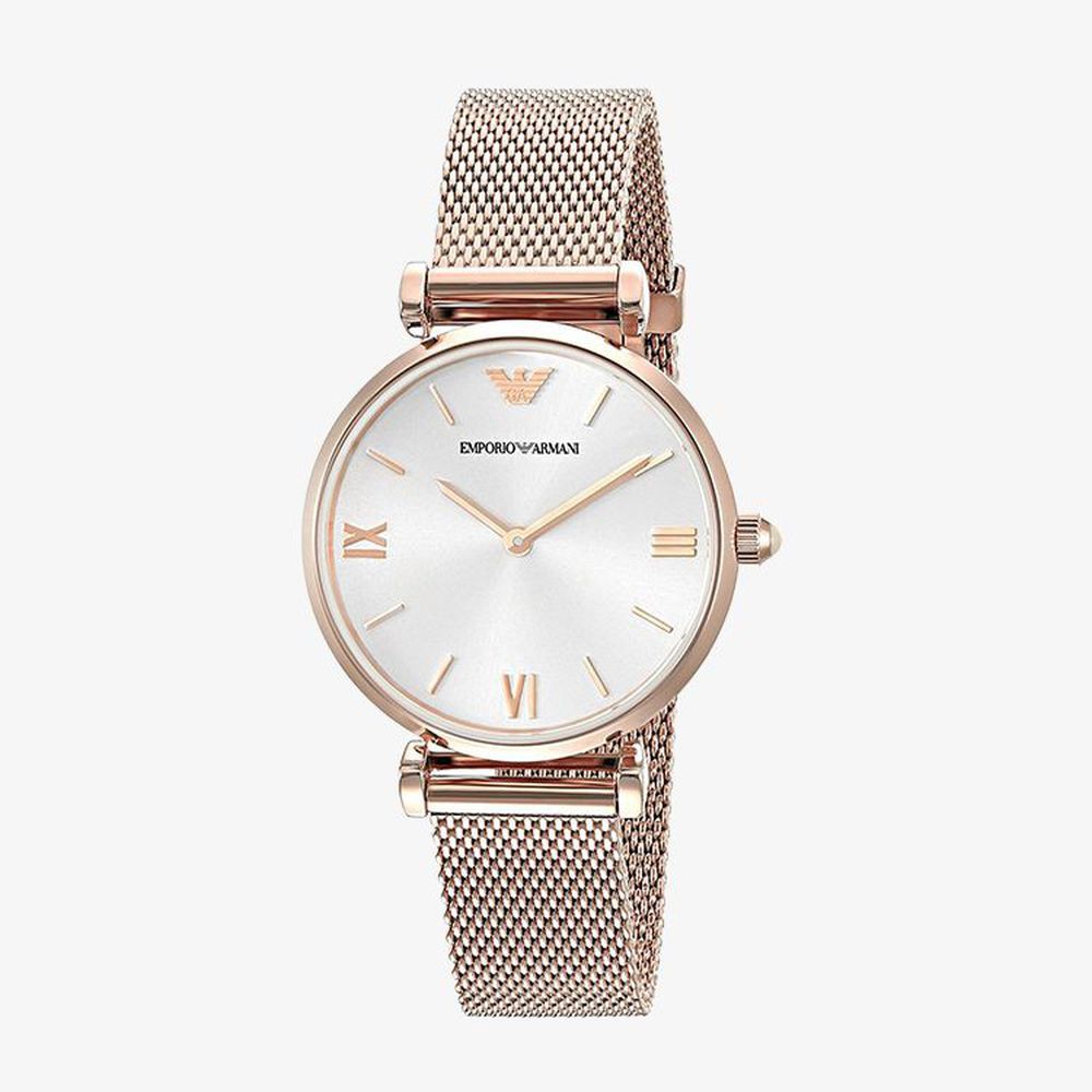 Emporio Armani นาฬิกาข้อมือผู้หญิง Retro Silver Dial Rose Gold รุ่น AR1956