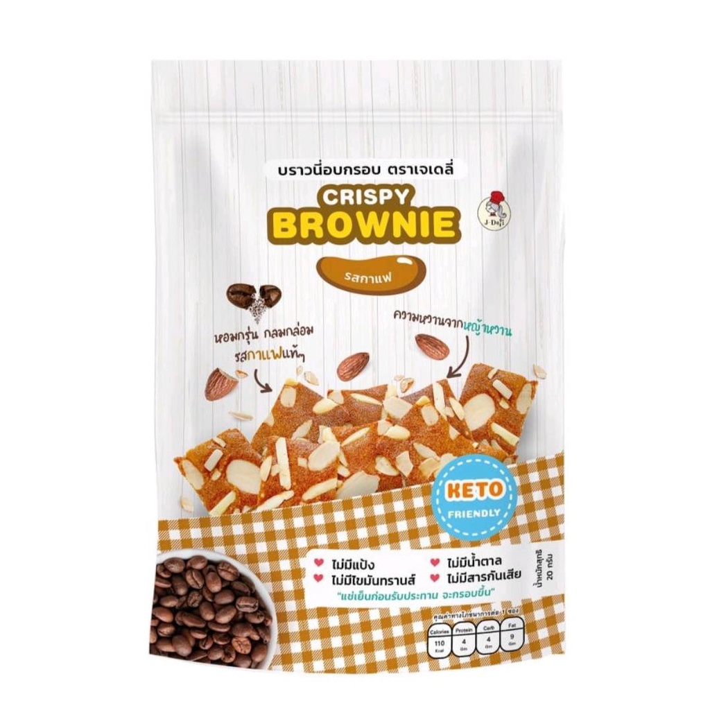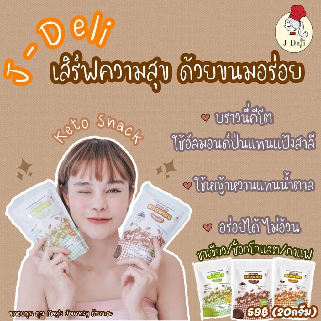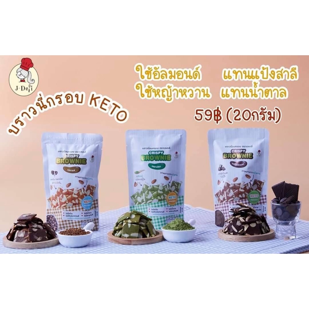 บราวนี่กรอบคีโต มี 3 รส ช็อคโกแลต ชาเขียว และกาแฟ ขนมคีโต ขนมเพื่อสุขภาพ ขนาด 20 กรัม