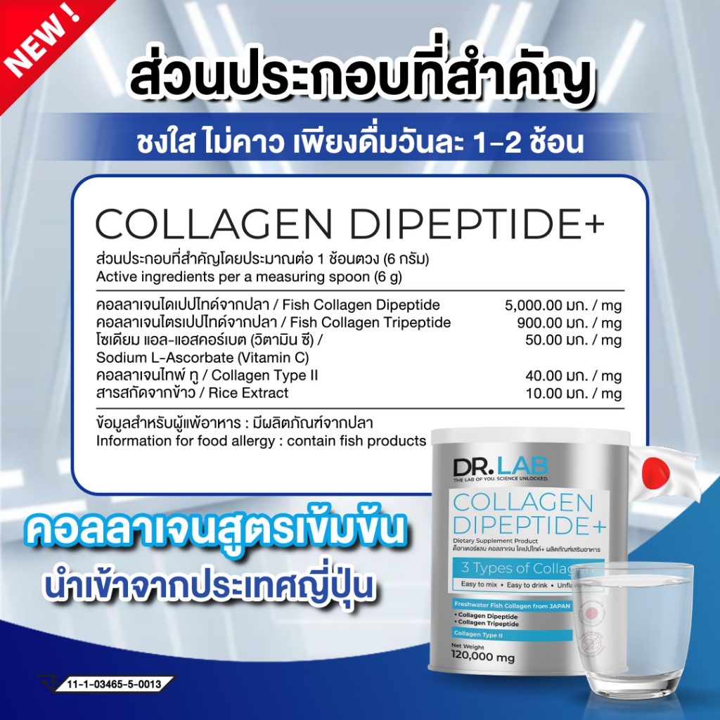 💥1 แถม 1💥DR.LAB Collagen type2 collagen แบบชง บำรุงกระดูก ข้อเข่า คอลลาเจนผง เติมน้ำในข้อ พยุงเข่า