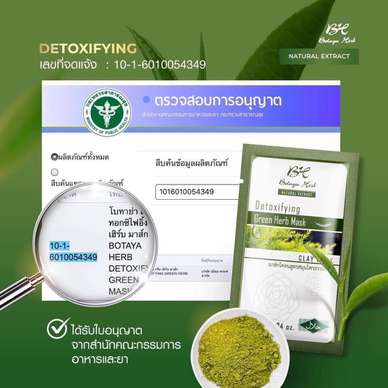 (1แถม1) พร้อมส่ง/เก็บปลายทาง มาส์กโคลนเขียว มาส์กดูดสิว โบทาย่าเฮิร์บ Green here mask botaya herb