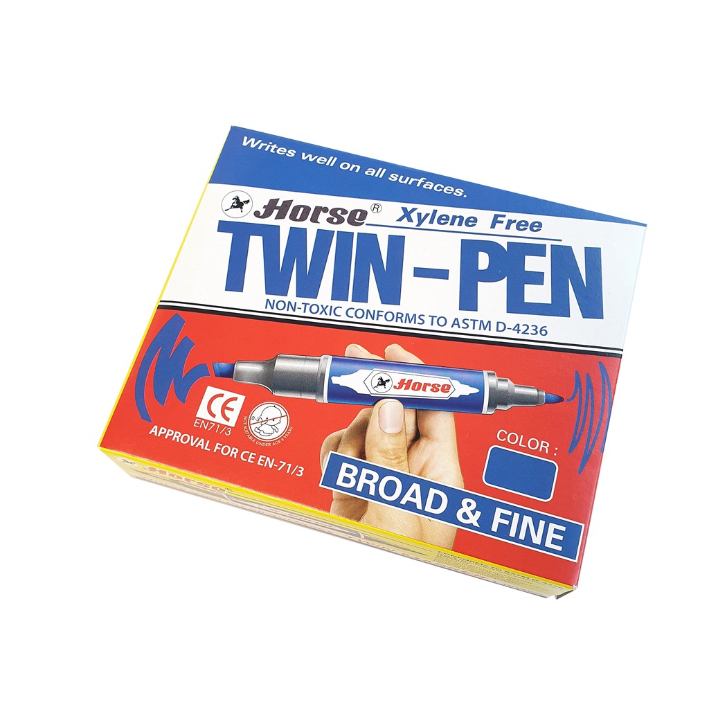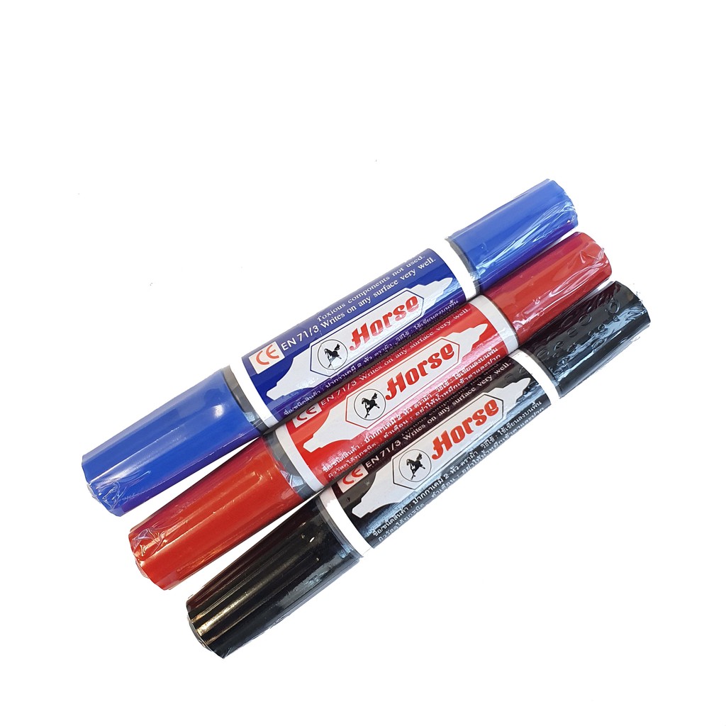 Horse ปากกาเคมี 2 หัว ตราม้า แพ็ค 12 มี 3 สีให้เลือก