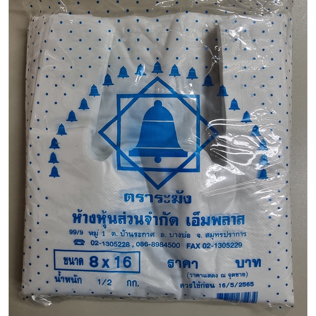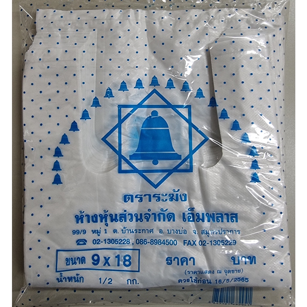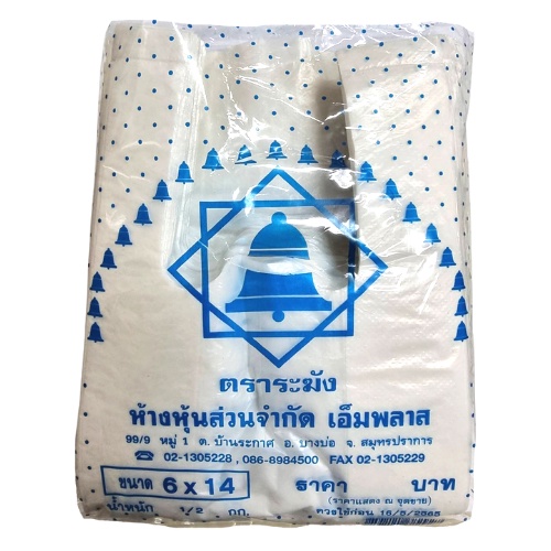 ถุงหูหิ้วบาง เกรด B เหนียว ตราระฆัง มีให้เลือก 7 ขนาด