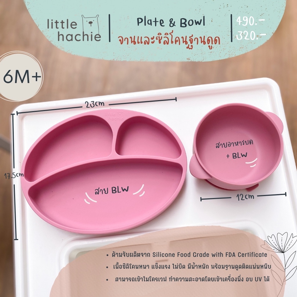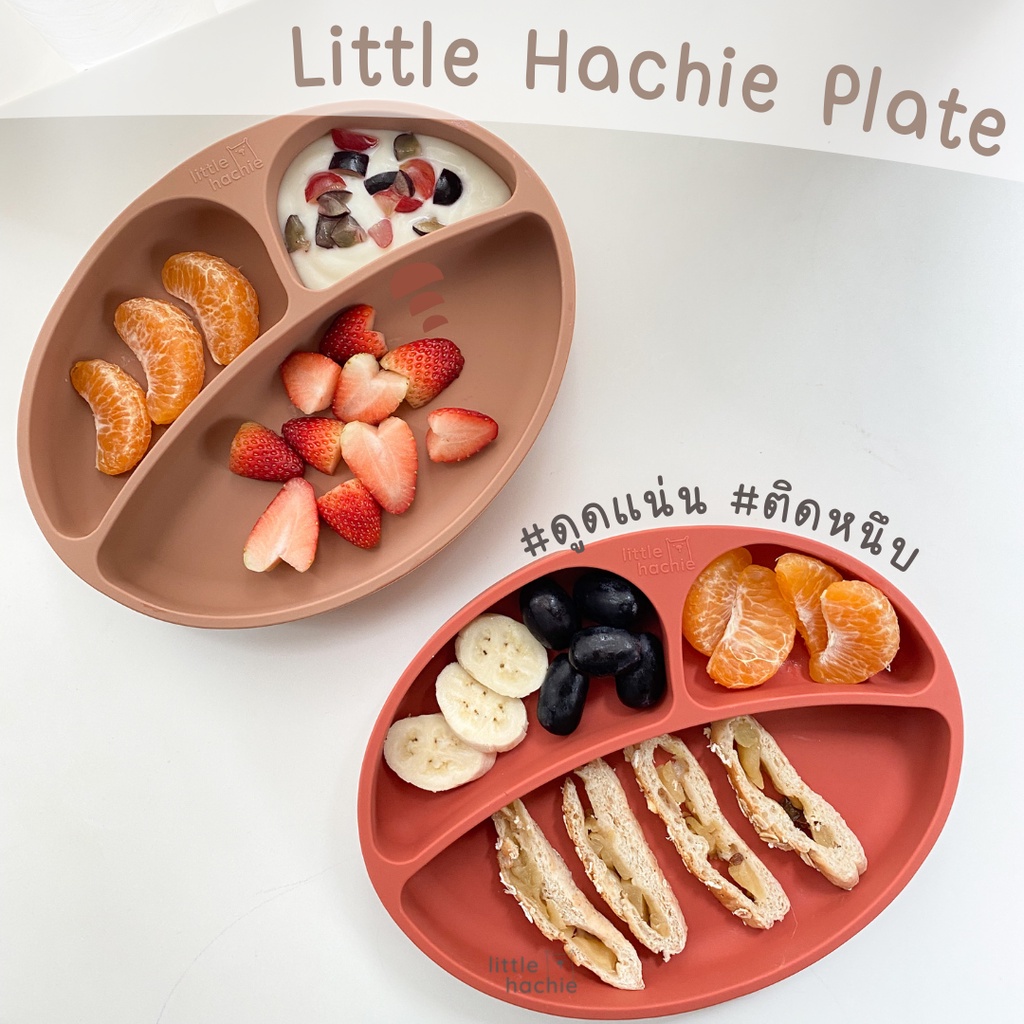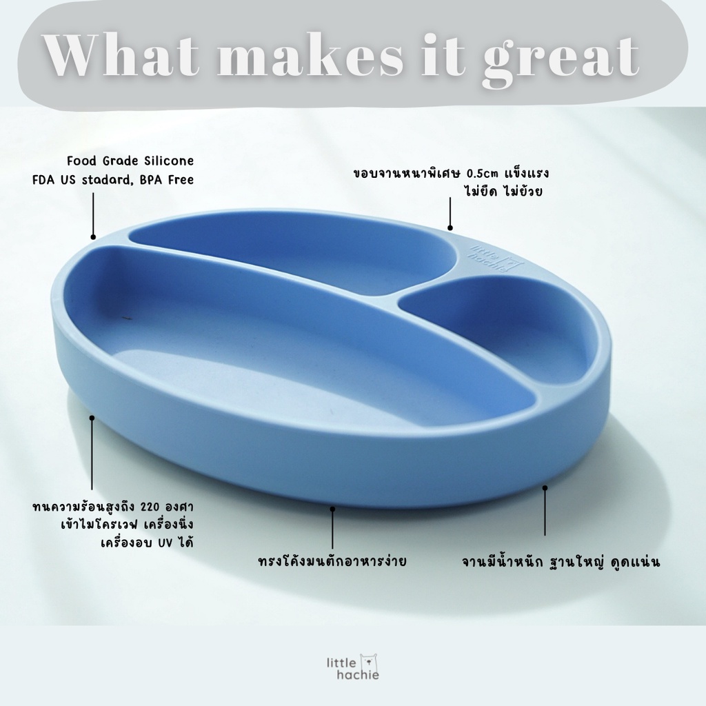 l Little Hachie | จานซิลิโคน จานข้าวเด็ก จานฐานดูด ทรงรี ดูดติดแน่น ช่องแบ่ง 3 ช่อง