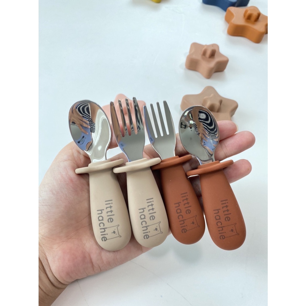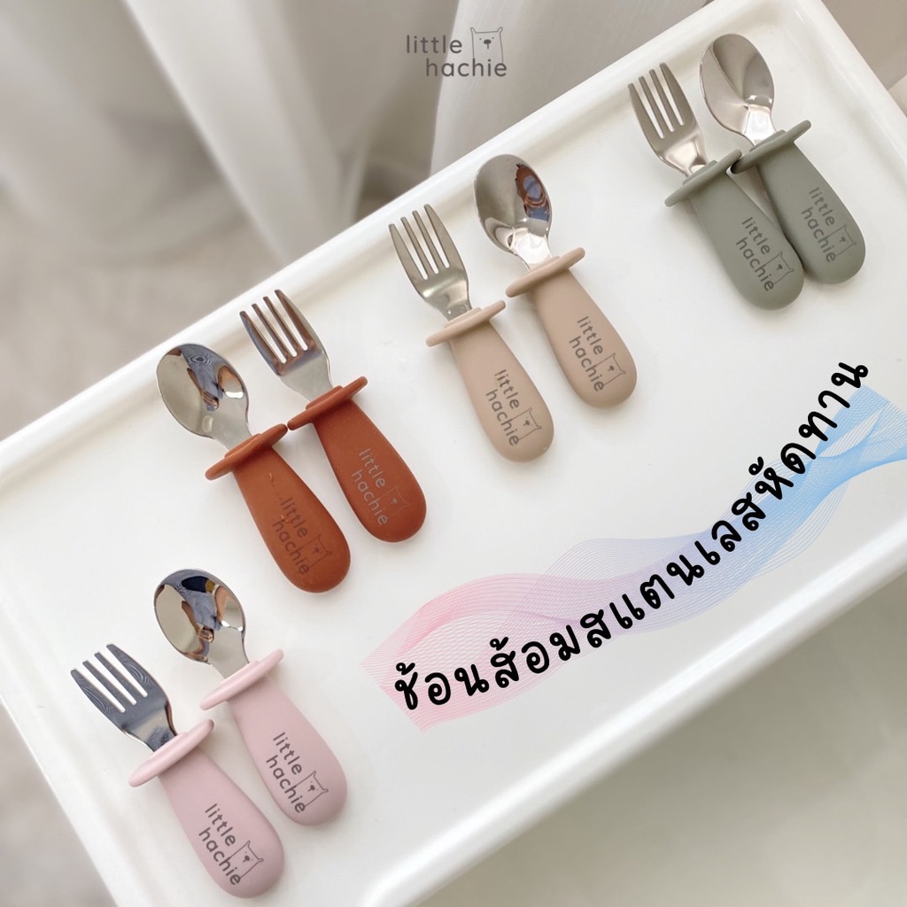 l Little Hachie l ช้อนส้อมเด็ก ช้อนส้อมสแตนเลส สแตนเลส 316 เนื้อหนา สำหรับวัย 12m+