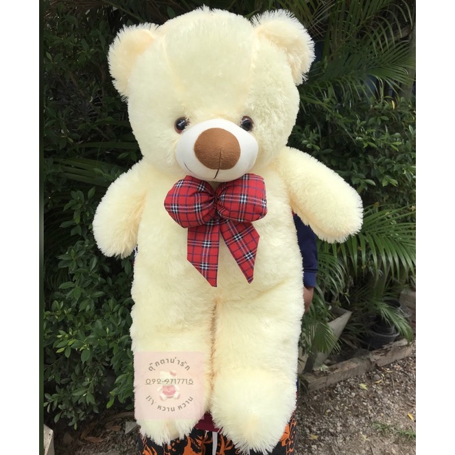 ตุ๊กตาหมีปุย โบว์ลายสก๊อตแดง ขนนุ่มน่ากอด มี3ขนาดให้เลือก18,26และ35นิ้ว หรือ 45,65และ90 cm