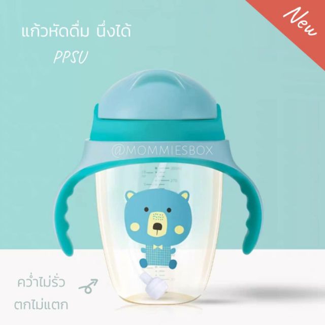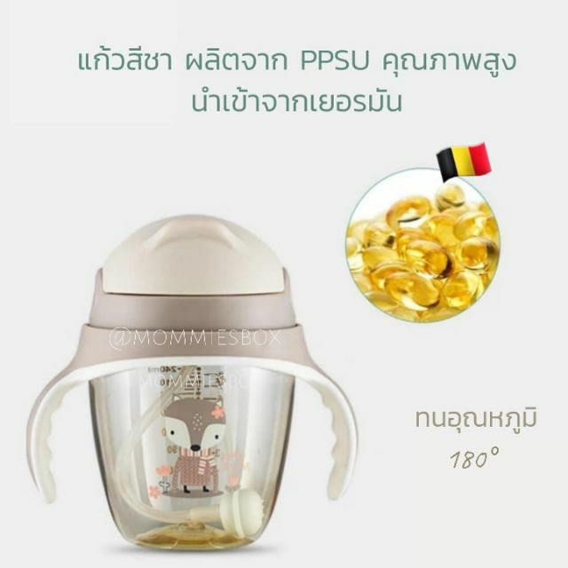 [ใส่โค้ด MOMMY3 ลดเพิ่ม50.-] แก้วหัดดื่มสีชา หลอดเด้ง นอนดูดได้360องศา ทำจาก PPSU วัสดุที่ดีที่สุดในการทำแก้วหัดดื่ม
