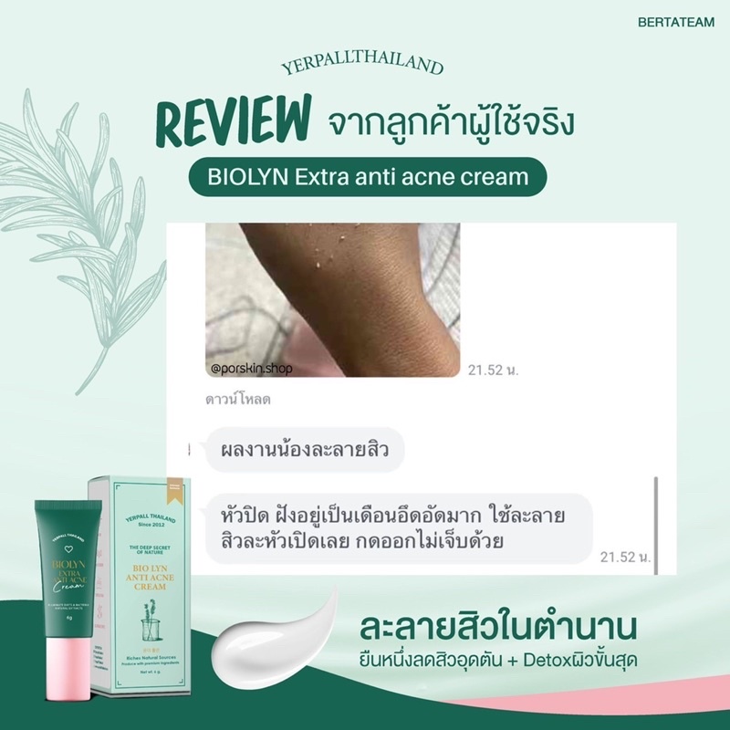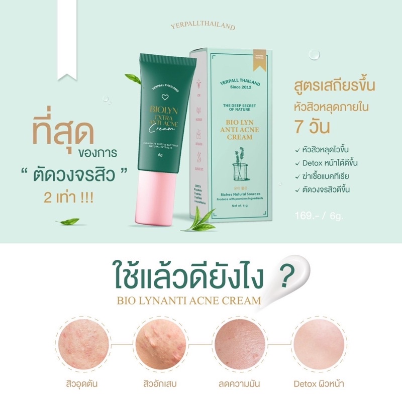 ละลายสิว 🥑 Yerpall Biolyn Anti Acne Cream สิวยุบไว ลดสิวอักเสบ สิวอุดตัน สิวผด