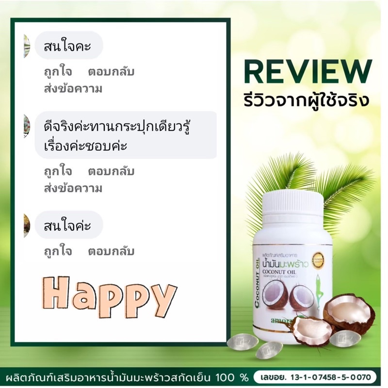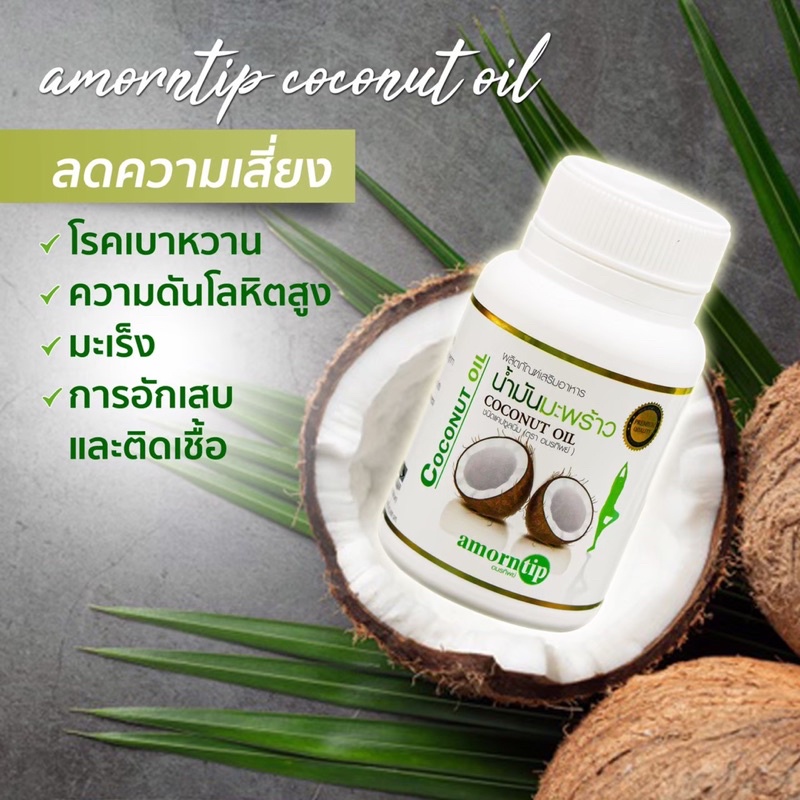น้ำมันมะพร้าวสกัดเย็น อมรทิพย์ Amorntip coconot oil 30ซอฟเจล/กระปุก