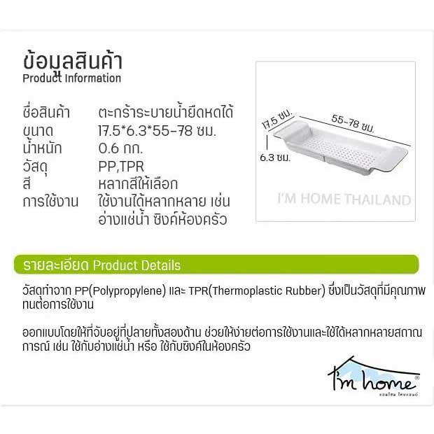 ตะกร้าระบายน้ำยืดหดได้ ตะกร้าแขวนอ่างแช่น้ำ ตะกร้าล้างผักผลไม้ draining basket for bathtub and kitchen sink