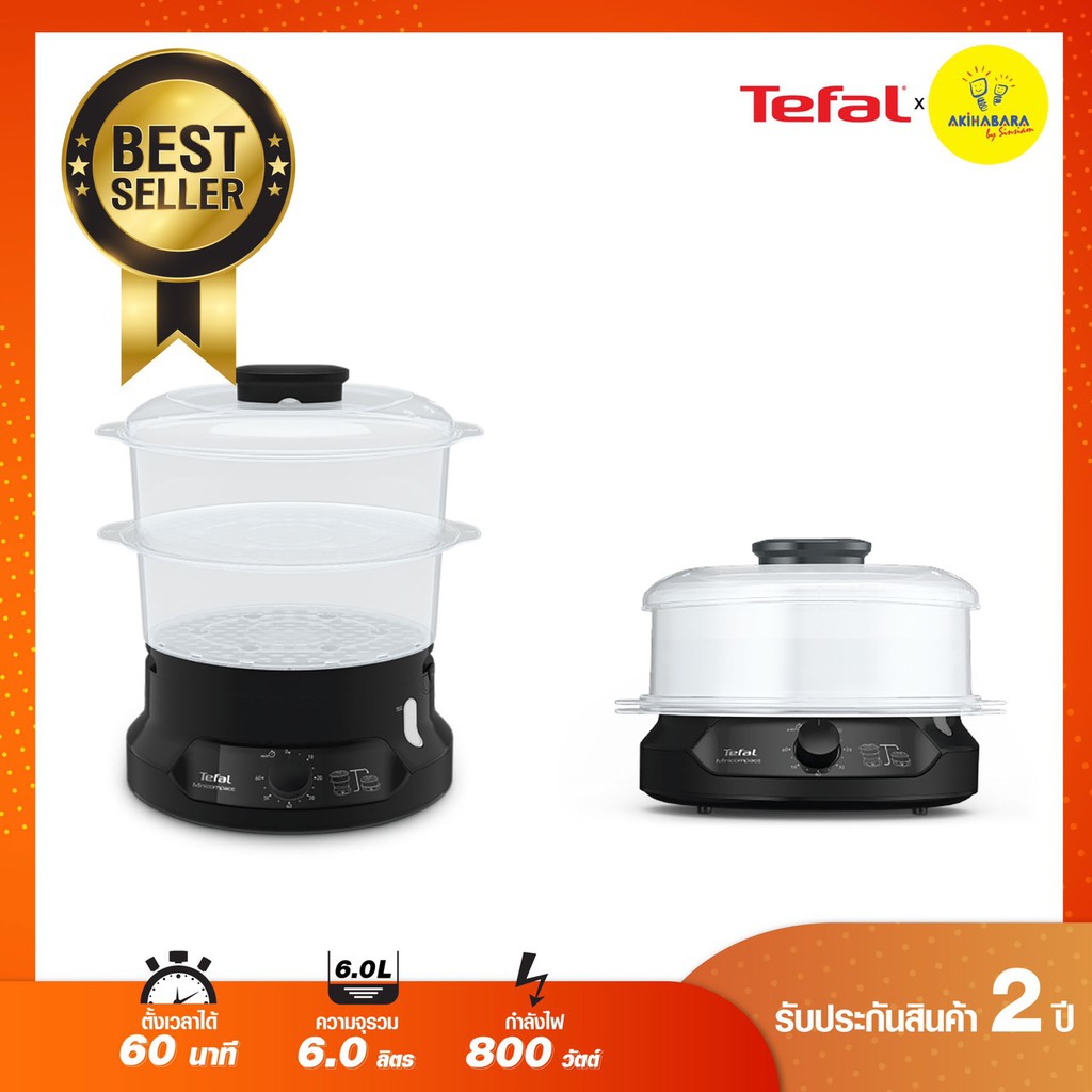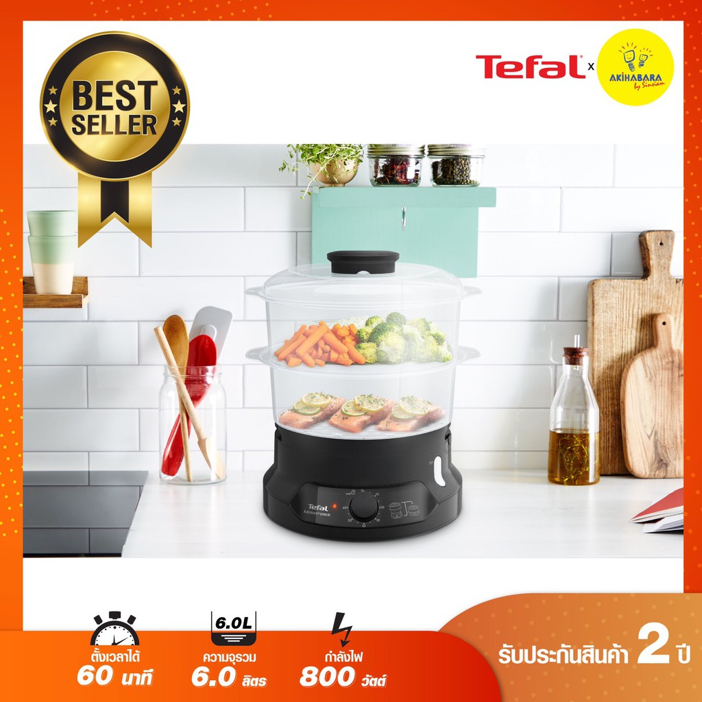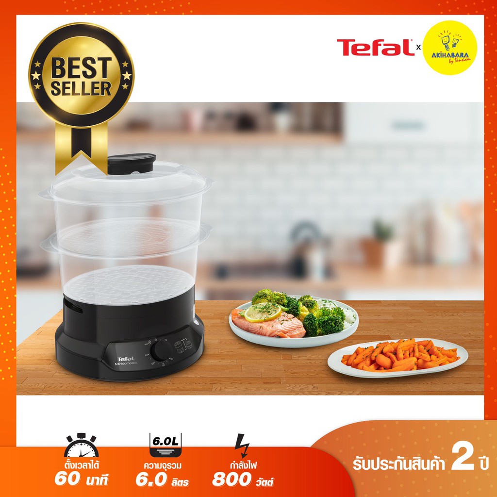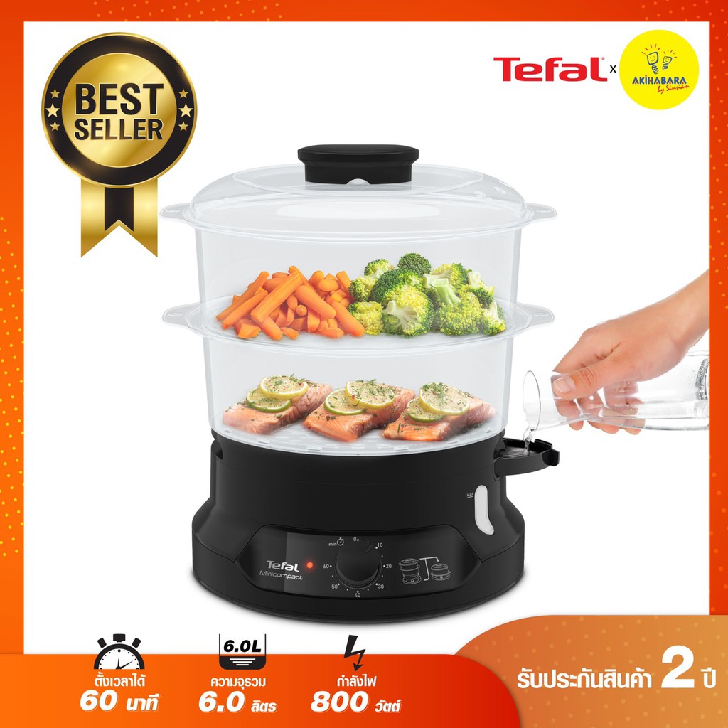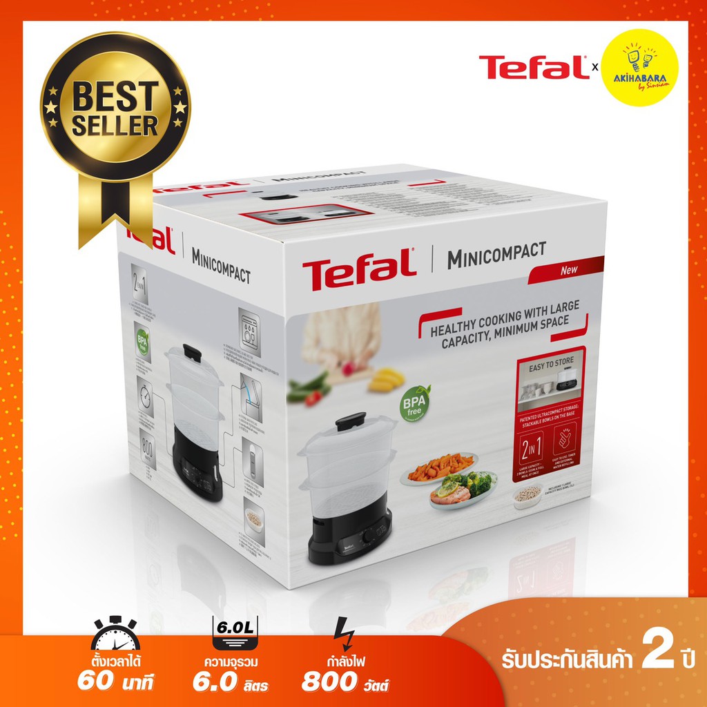 🔥TEFAL หม้อนึ่งไฟฟ้า MINICOMPACT 2 BOWLS STEAMER ขนาดความจุ 6 ลิตร รุ่น VC139810 รับประกัน 2 ปี🔥
