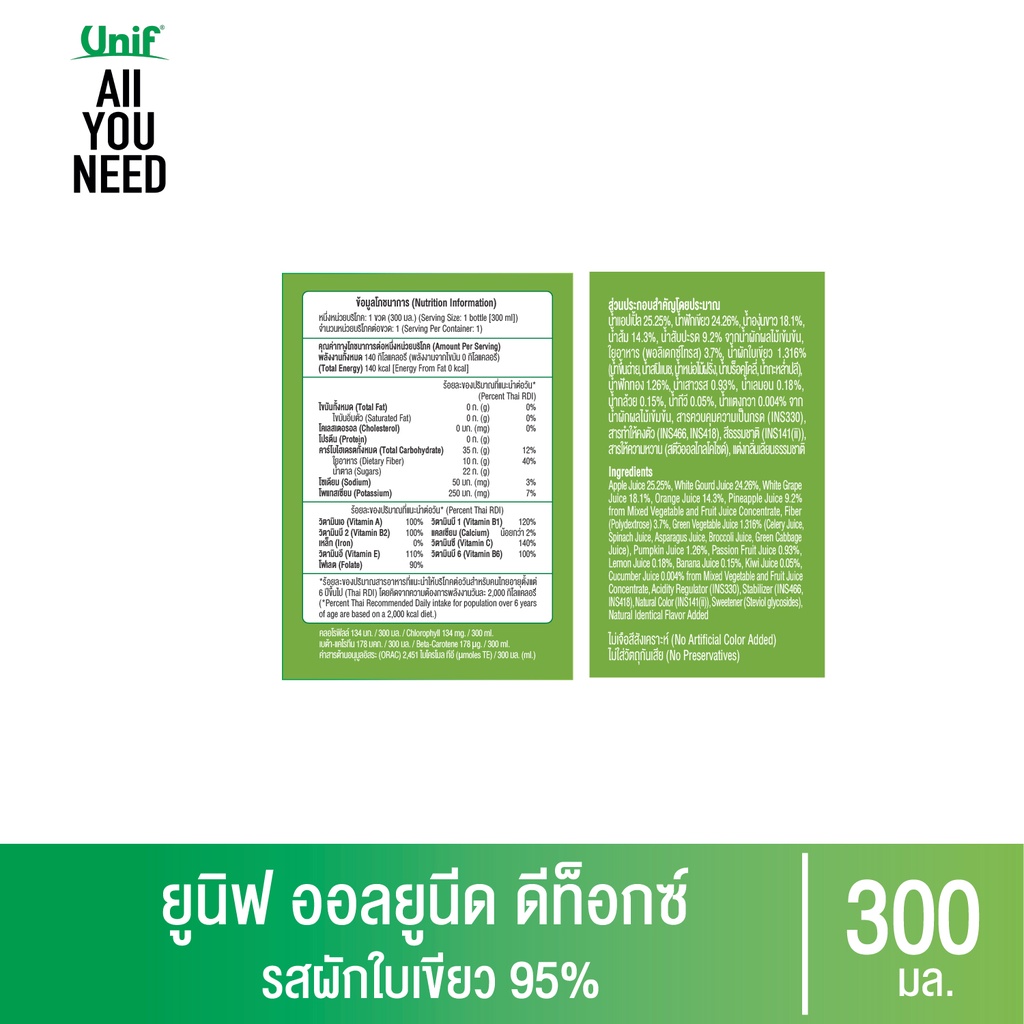 [6 ขวด] Unif All You Need ยูนิฟออลยูนีดน้ำผักผลไม้ผสมผักใบเขียวรวม 300มล.