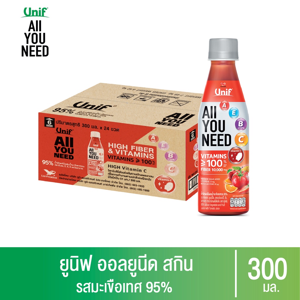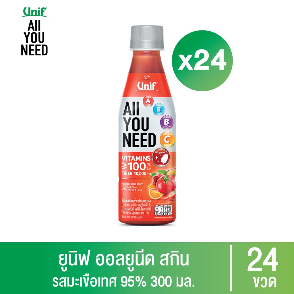 [ยกลัง 24 ขวด] Unif All You Need ยูนิฟออลยูนีดน้ำผักผลไม้ผสมน้ำมะเขือเทศรวม 300มล.
