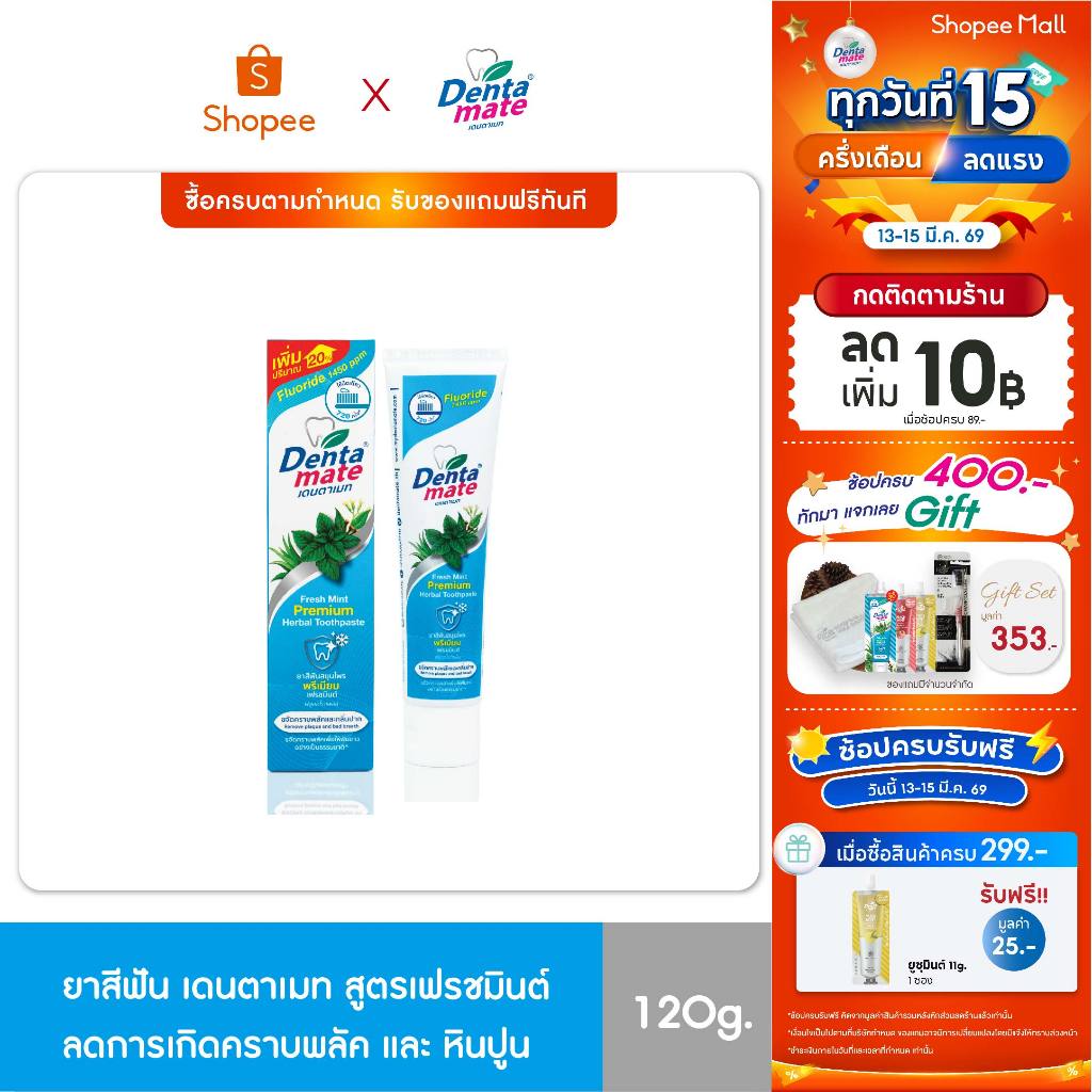 Dentamate Fresh Mint Fluoride Plus เดนตาเมท ยาสีฟันสมุนไพร พรีเมียม เฟรชมินต์ ฟลูออไรด์พลัส 120g