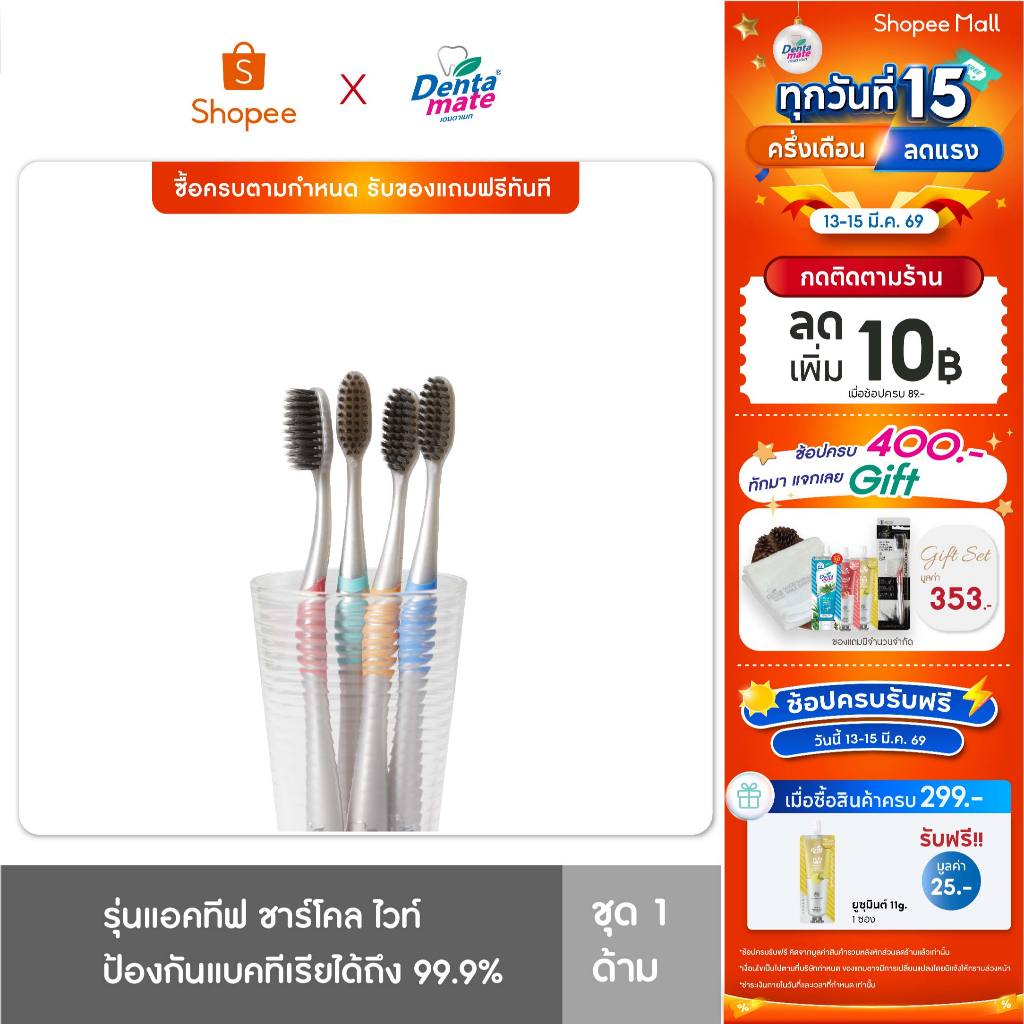 Dentamate Active Charcoal white Toothbrush แปรงสีฟัน เดนตาเมท ชาร์โคล ไวท์