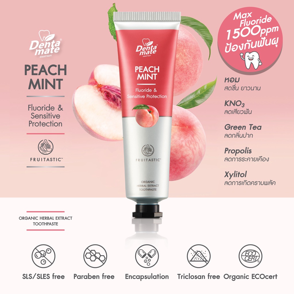 Dentamate Peach Mint Herbal Extract Toothpaste เดนตาเมท ยาส ีฟันสมุนไพรสกัด พีชมินต์