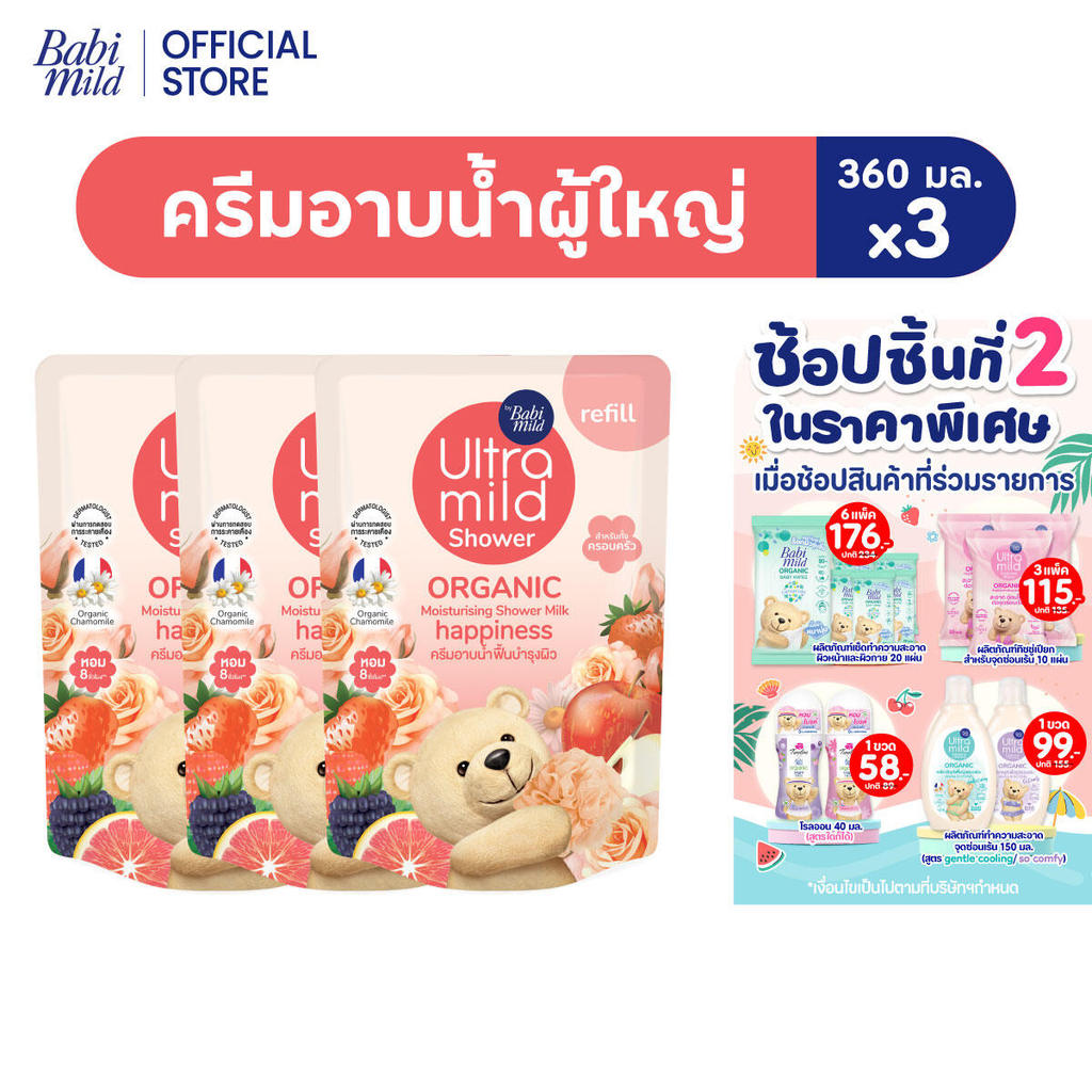 อัลตร้ามายด์ สบู่เหลว แฮปปี้เนส ถุงเติม 360 มล. X3 / Ultra Mild Happiness Bath Refill 360ml x3