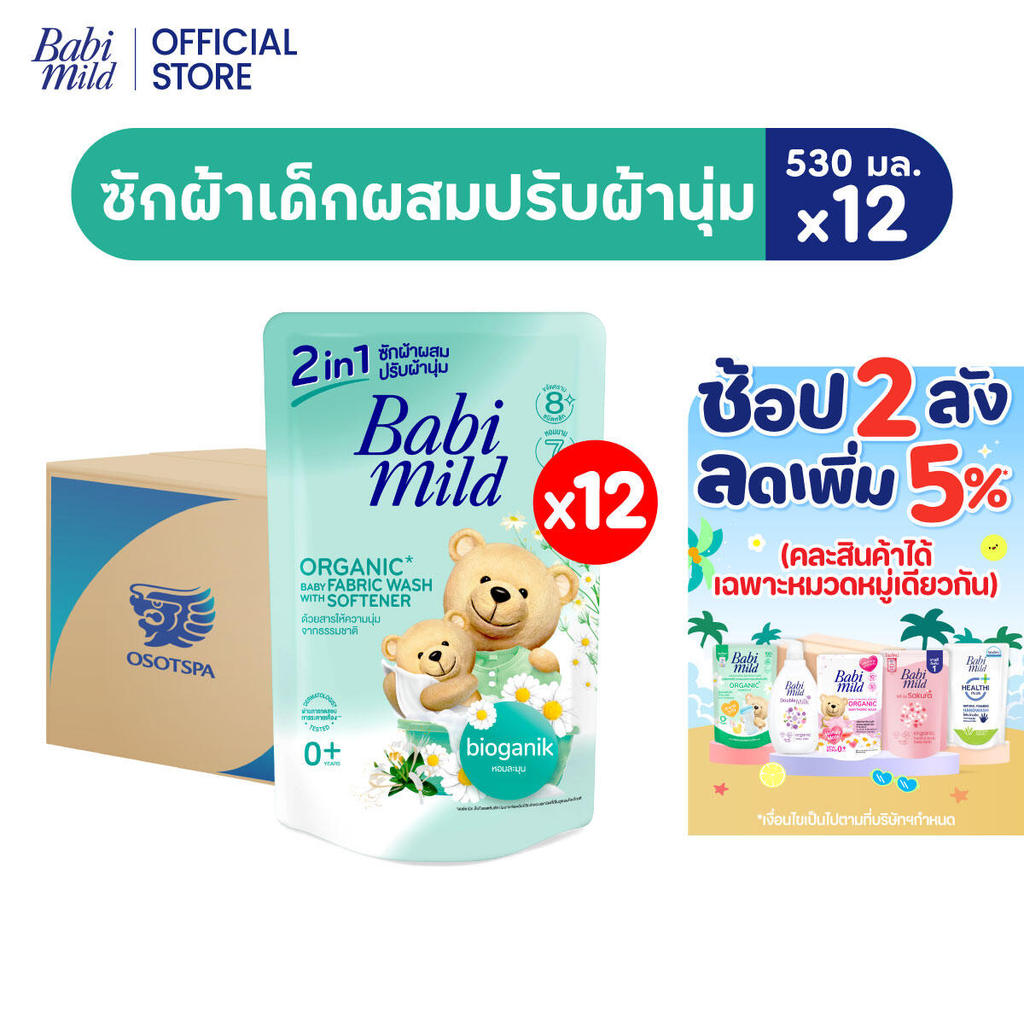 [ยกลัง] เบบี้มายด์ 2in1 น้ำยาซักผ้าเด็กและปรับผ้านุ่ม 530มล X12 /Babi Mild Fabric Wash 2in1 530ml