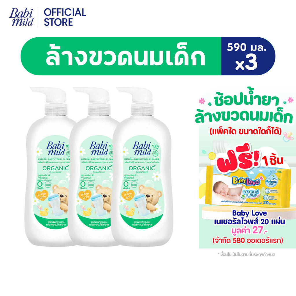 [Babi Mild x Butterbear]เบบี้มายด์ น้ำยาล้างขวดนมและจุกนม ขวดปั๊ม 590 มล. x3 / Babi Mild Bottle & Nipple Cleaner 590mlx3