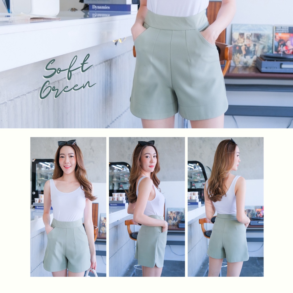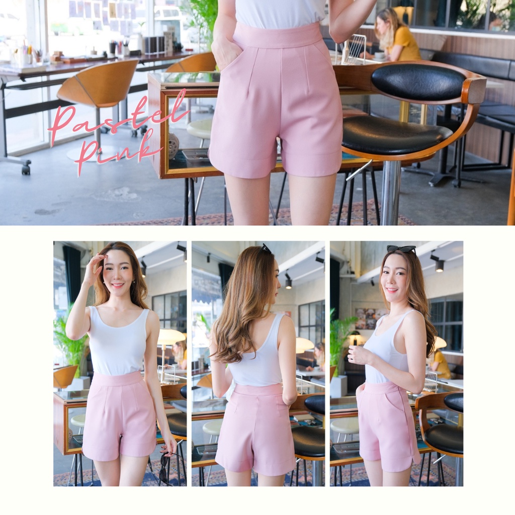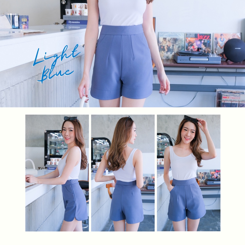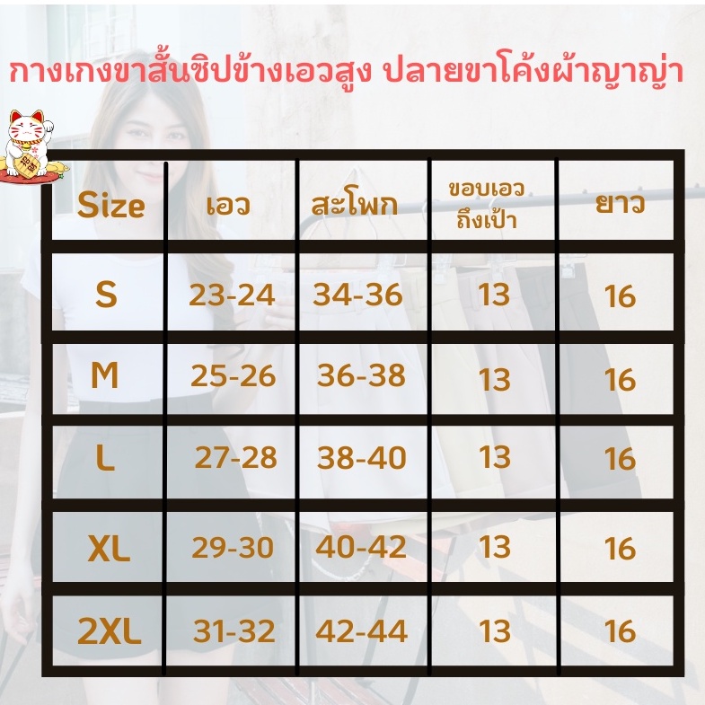 กางเกงขาสั้นซิปข้างเอวสูง ปลายขาโค้งผ้าญาญ่า S-2XL