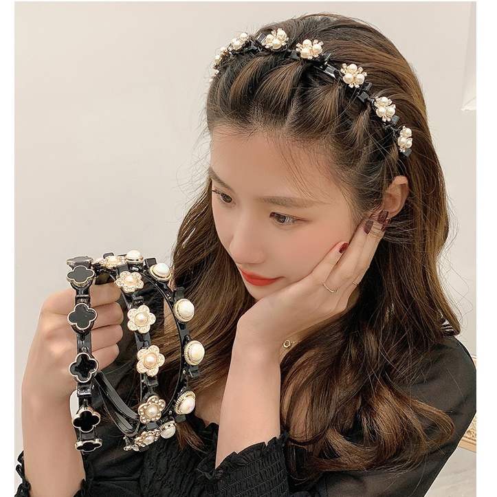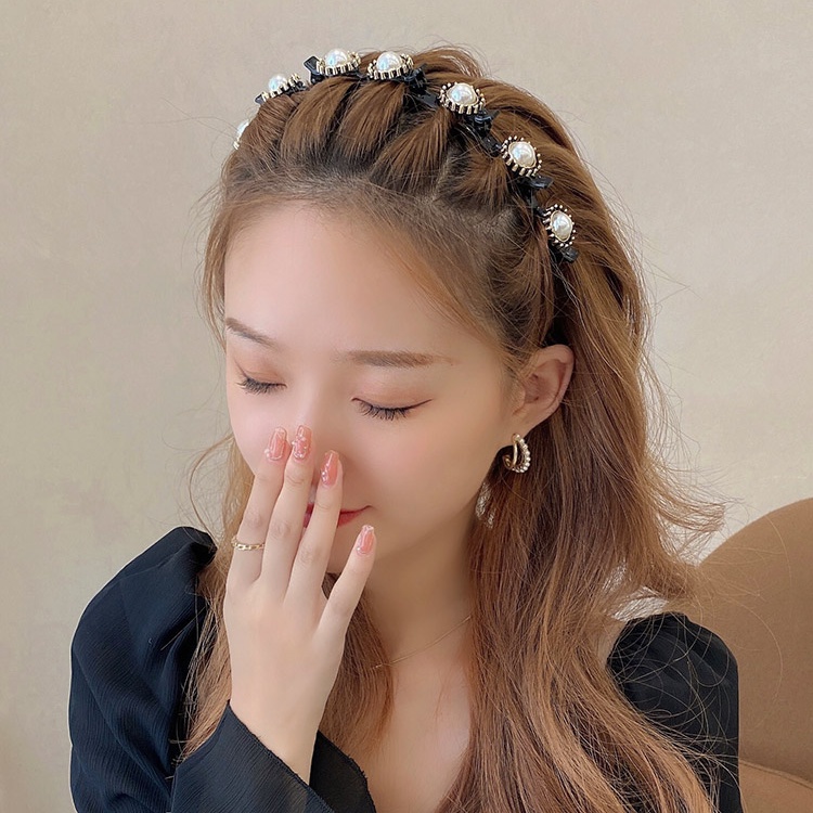 ที่คาดผมไข่มุก หน้าม้าติดตาย ที่คาดผมหน้าม้าสองชั้น เครื่องมือจัดแต่งทรงผมสำหรับผู้หญิง
