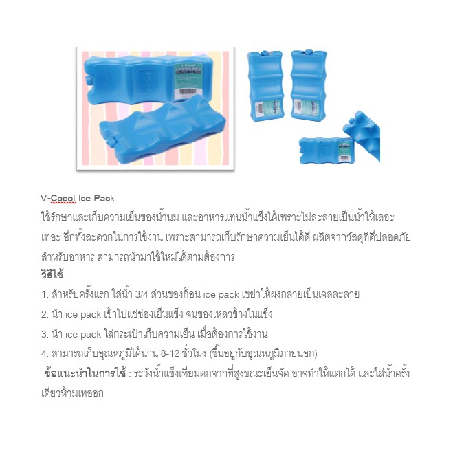 น้ำแข็งเทียม Ice Brick V-Coool vcool Ice Pack ใส่ในกระเป๋าเก็บความเย็น