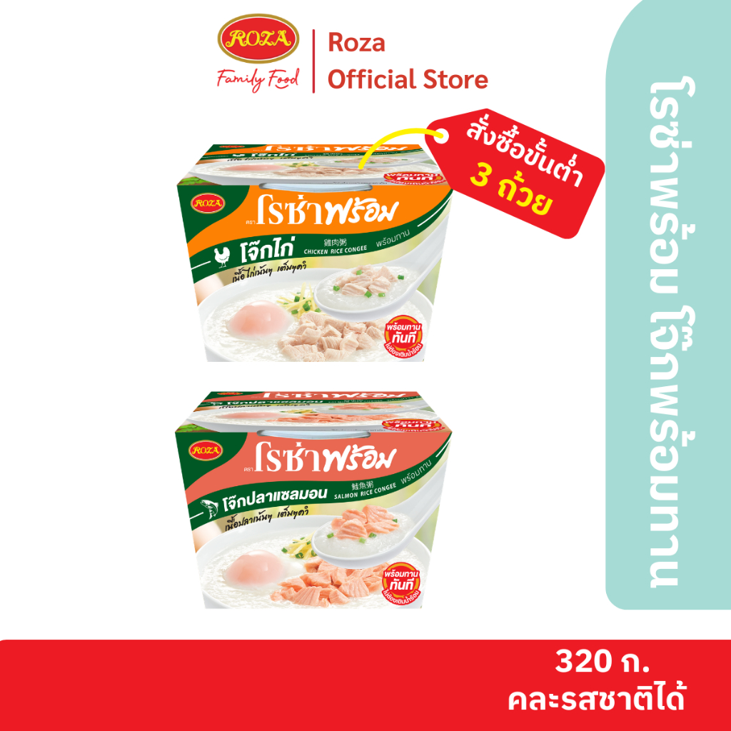 โรซ่าพร้อม โจ๊กพร้อมทาน เมนูโจ๊กปลาแซลมอนและโจ๊กไก่ ขนาด 320 กรัม