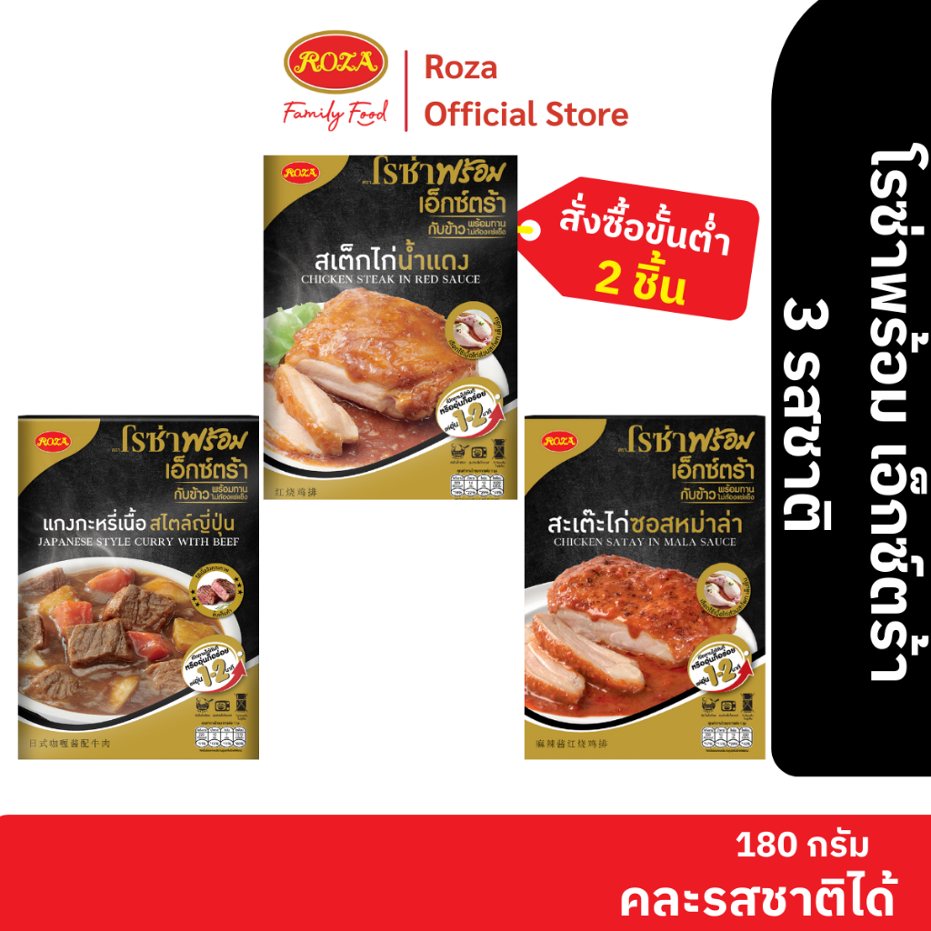 โรซ่าพร้อม เอ็กซ์ตร้า อาหารพร้อมทาน เมนูเนื้อและไก่ 4 รสชาติ ขนาด 180 กรัม