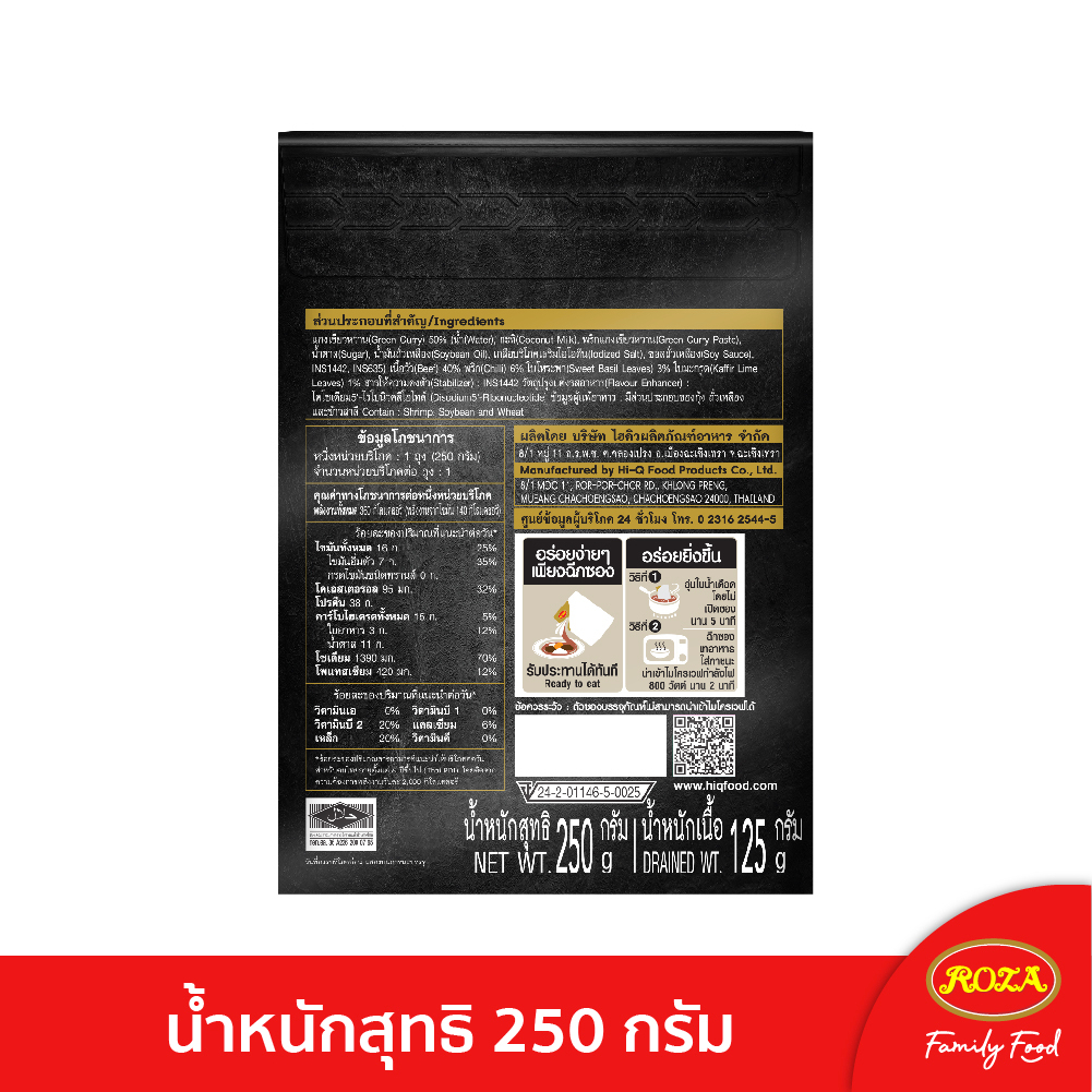 โรซ่าพร้อม เอ็กซ์ตร้า อาหารพร้อมทาน แกงเขียวหวานเนื้อ เอ็กซ์ตร้า 180 กรัม