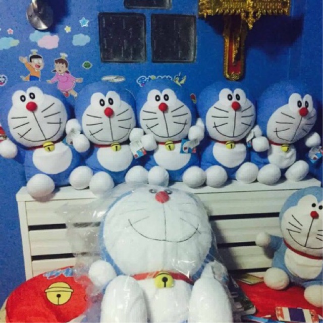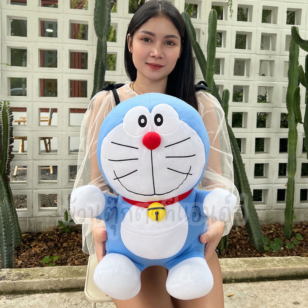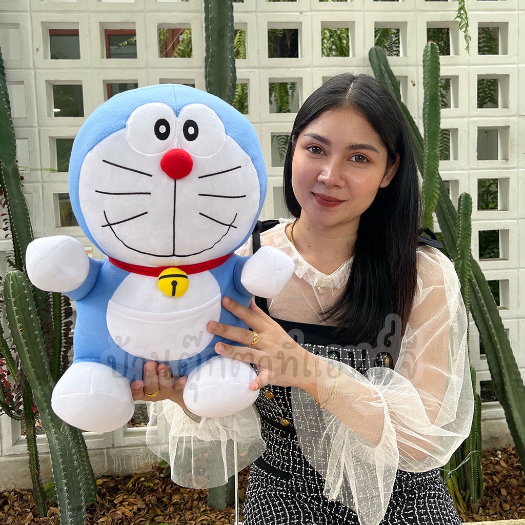 ตุ๊กตาโดเรม่อน Doraemon โดเรมอน ผ้าทีคอต ท่านั่ง (ขนาด 16 นิ้ว) ลิขสิทธิ์แท้ ของขวัญหำหรับเด็ก