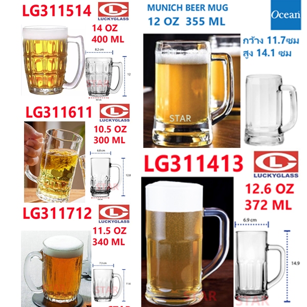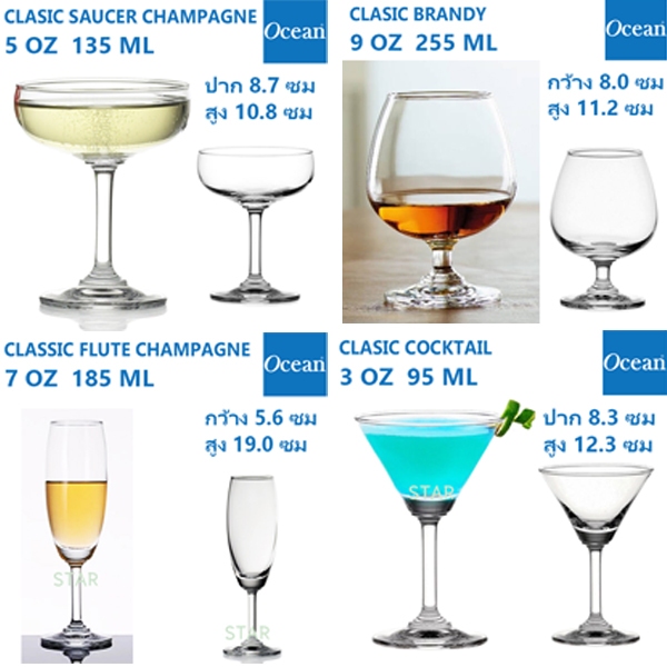 แก้วเหล้า แก้วเบียร์ น้ำดื่ม บรั่นดี กาแฟ ค็อกเทล คาเฟ่ สวยงาม ทนทาน คุณภาพดี สินค้าแตกเครมได้ ราคาต่อ 1 ใบ OCEAN LUCKY