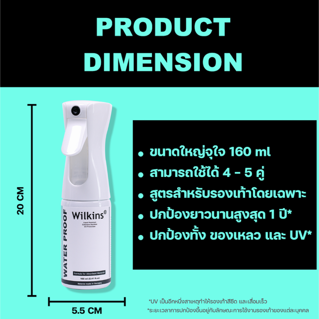 สเปรย์กันน้ำรองเท้า สเปรย์เคลือบรองเท้า Wilkins Waterproof Spray - สูต ร Water base สำหรับรองเท้าผ้า
