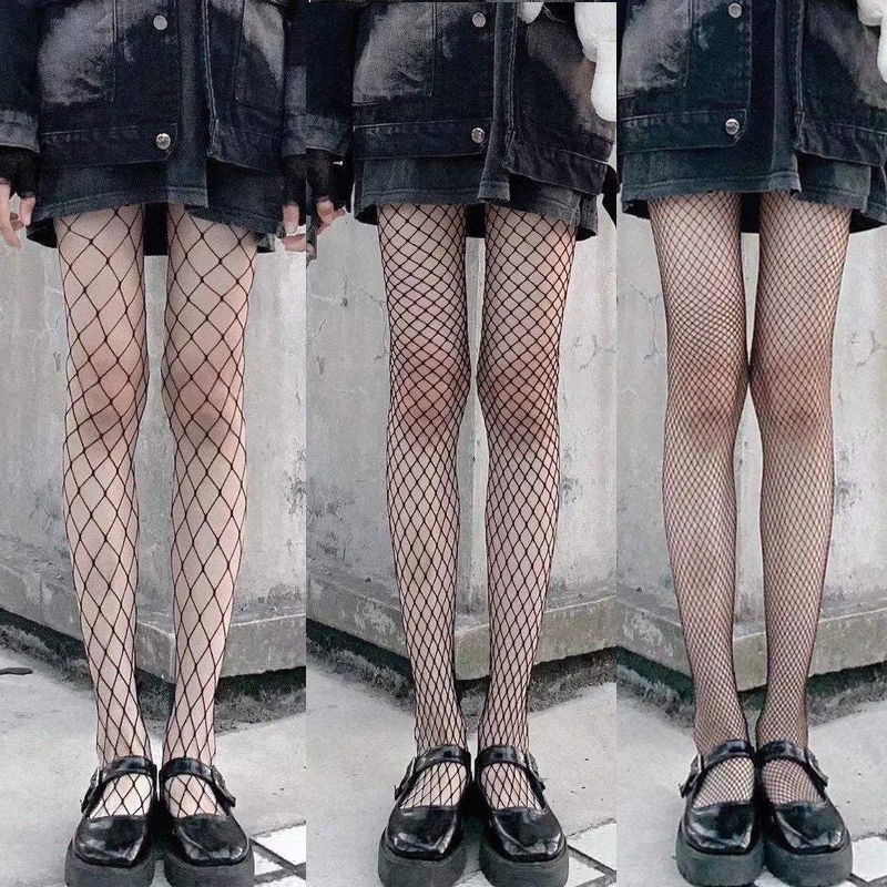 ถุงน่องแฟชั่นในถุงน่องตาข่ายสีดำ พร้อมส่ง