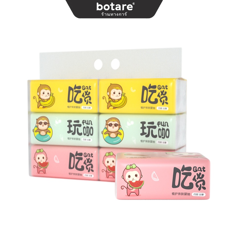Botare กระดาษทิชชู่ กระดาษเช็ดหน้า ลายการ์ตูนลิง 400 แผ่น 6 ห่อ