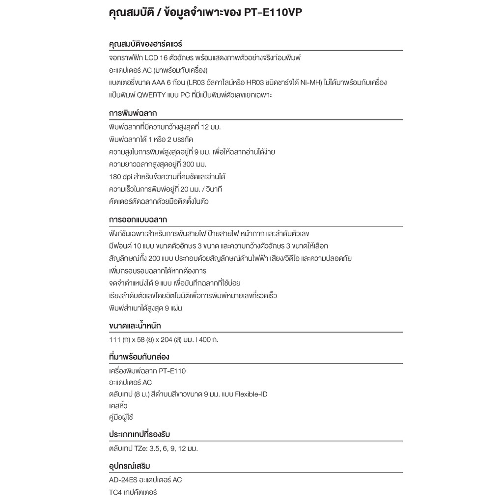 เครื่องพิมพ์ฉลาก BROTHER แบบพกพา รุ่น PT-E110VP พิมพ์ภาษาอังกฤษและไทยได้ รับประกัน 1 ปี **พร้อมส่ง**