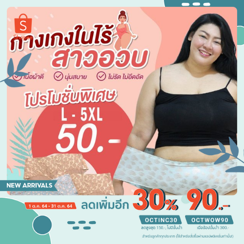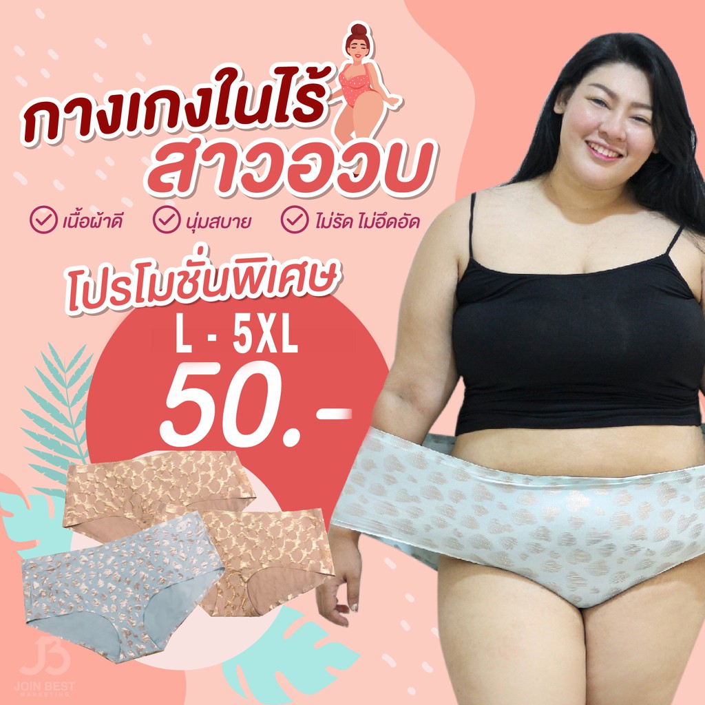 กางเกงในไซส์ จั้มโบ้ ผ้าหนานุ่ม เป้ากว้างพิเศษ ยืดได้เยอะ เอวสูง ไม่เข้าวิน L-5XL สะโพกใหญ่สุด 70นิ้ว กกนสาวอวบ