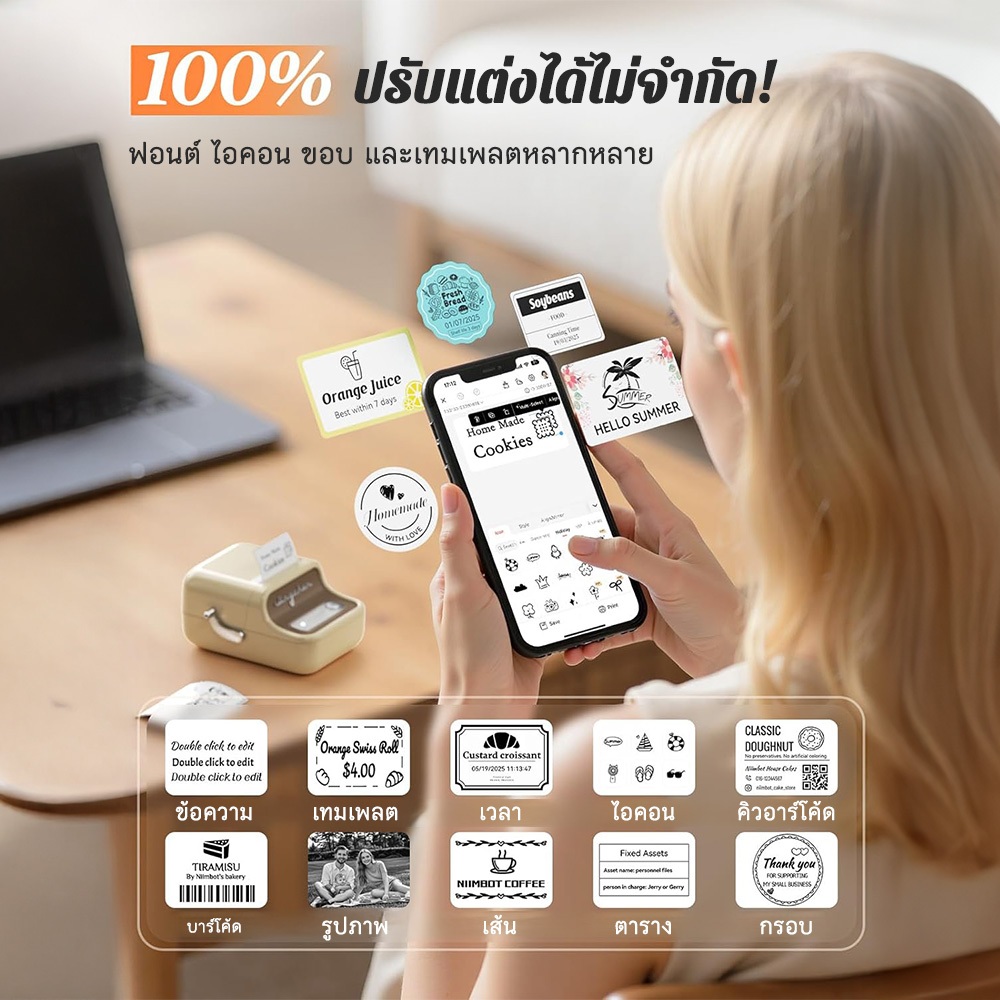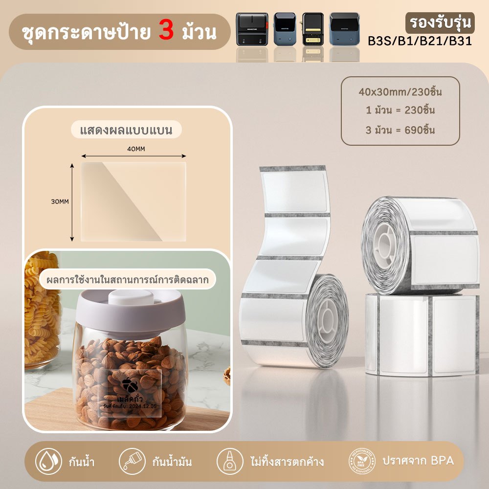 【ไทยในสต็อก】Niimbot B21 B1 เครื่องพิมพ์ฉลากความร้อนไร้สายบลูทูธแบบพกพาเครื่องพิมพ์ผู้ผลิตซูเปอร์มาร์