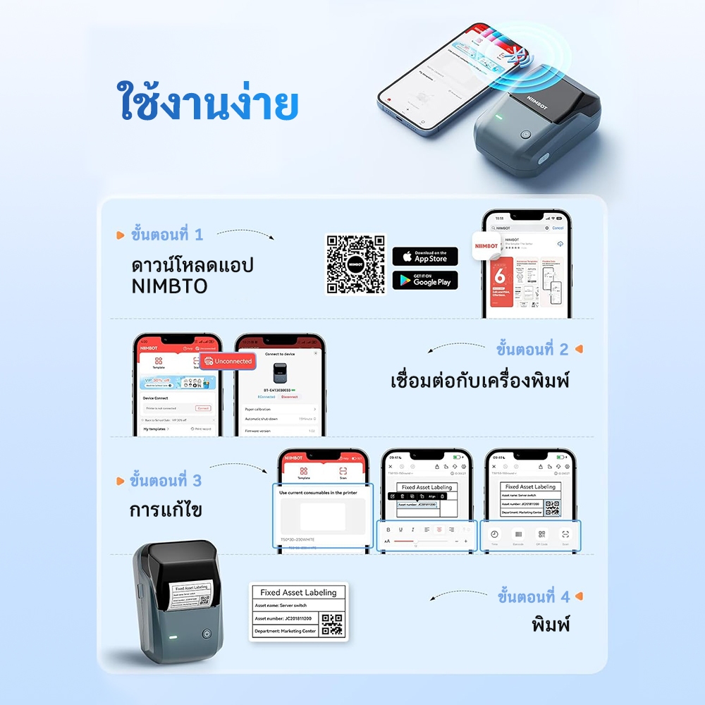 NIIMBOT B1 เครื่องพิมพ์ฉลาก Bluetooth เครื่องพิมพ์ความร้อนแบบพกพาสำหรับการทำสติกเกอร์ฉลาก