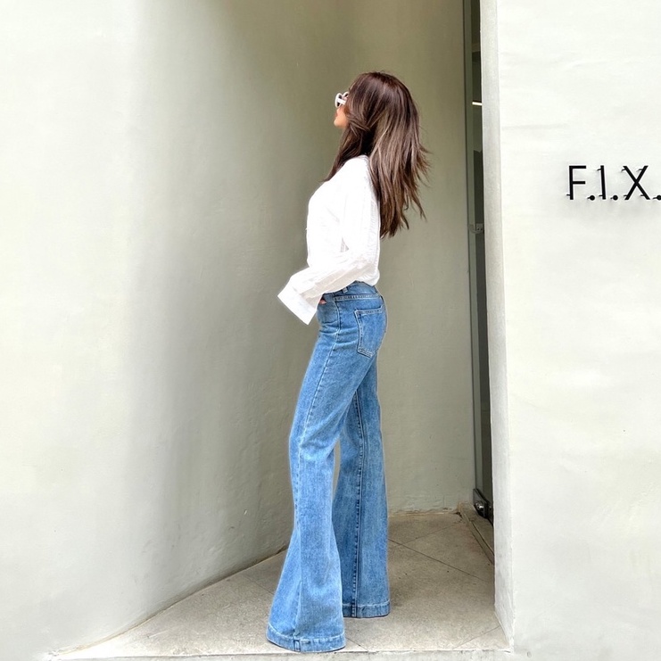 กางเกงยีนส์เอวสูงขาม้านิดๆ สีBlue lightใส่แล้วขายาวดูสูงมาก#PTJ3712