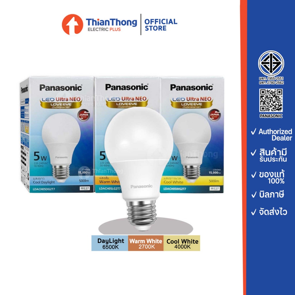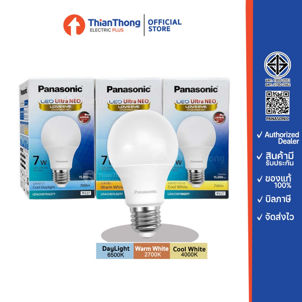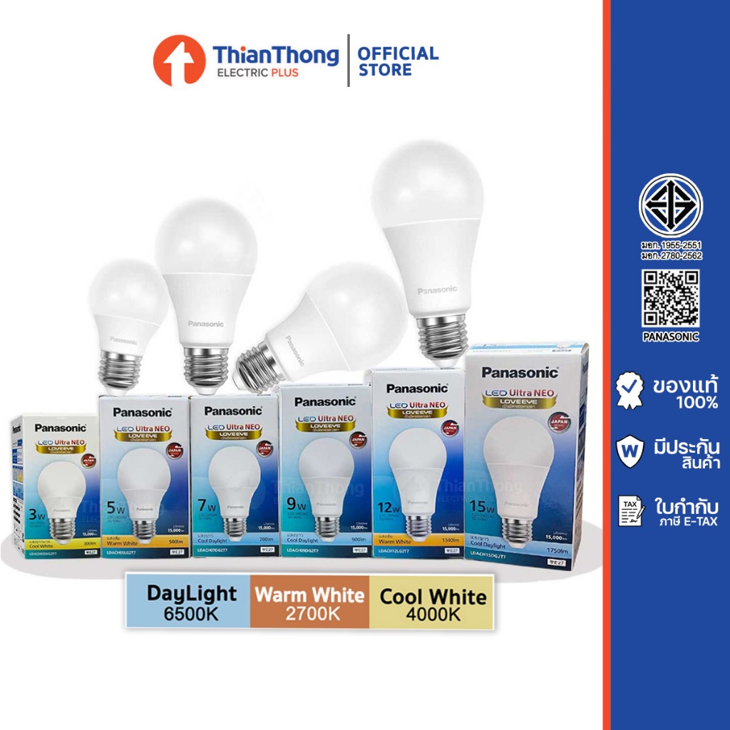Panasonic หลอดไฟ พานาโซนิค LED Ultra Neo Bulb 3W 5W, 7W, 9W. 12W, 15W ขั้ว E27