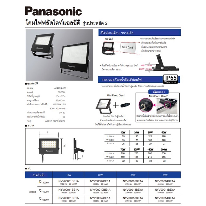 Panasonic สปอร์ตไลท์ ฟลัดไลท์ พานาโซนิค LED Mini Floodlight 10W 20W 30W 50W
