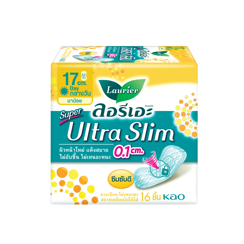 ลอรีเอะ ซูเปอร์ อัลตร้า สลิม กลางวัน บางเฉียบ 0.1 ยาว 17 ซม. ไม่มีปีก 16 ชิ้น(Sanitary napkin,ผ้าอนามัย)