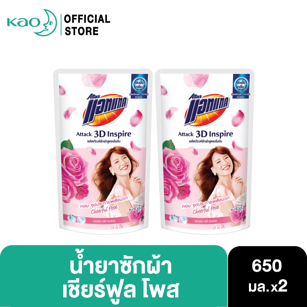 [1Free1] แอทแทค 3D อินสไปร์ เชียร์ฟูล โพส น้ำยาซักผ้า สูตรเข้มข้น 650 ml,Attack 3D Inspire Cheerful Pose Liquid 650ml