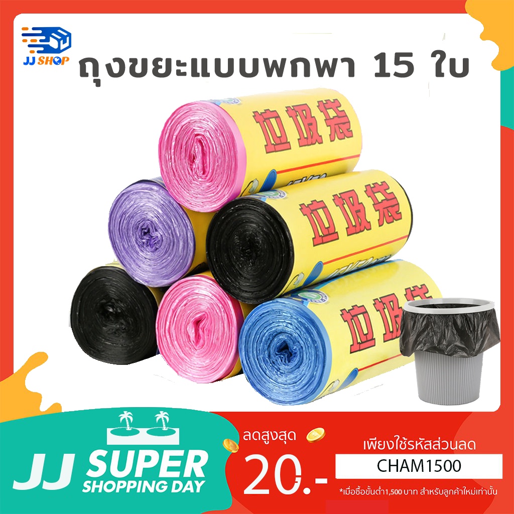 🗑ถุงขยะแบบพกพา เนื้อเหนียว ไม่มีกลิ่น Sz.45x50ซม. ม้วนละ15ใบ