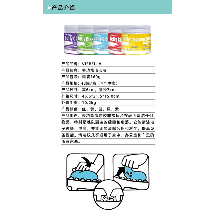 🇺🇸เจลทำความสะอาดแบบกระปุก 160g. มาตรฐานUSA รับประกันไม่เหลว มีกลิ่นหอม เจลดูดฝุ่น สไลม์ดูดฝุ่นVisbellaของแท้100%