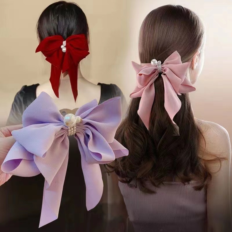 🧡จัดส่งที่รวดเร็ว🧡กิ๊บติดผม ผ้าชีฟอง ประดับโบ และไข่มุก แฟชั่นฤดูใบไม้ผลิ 2022