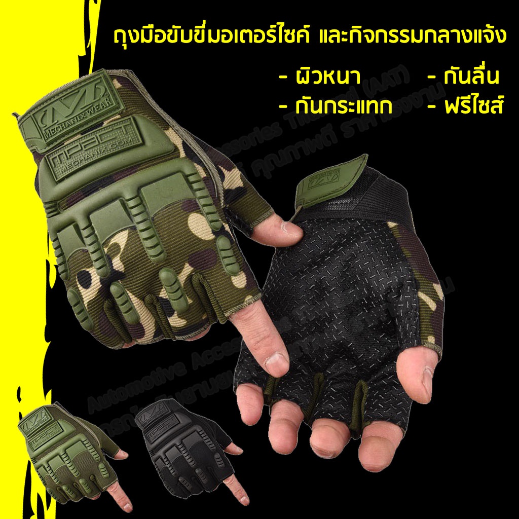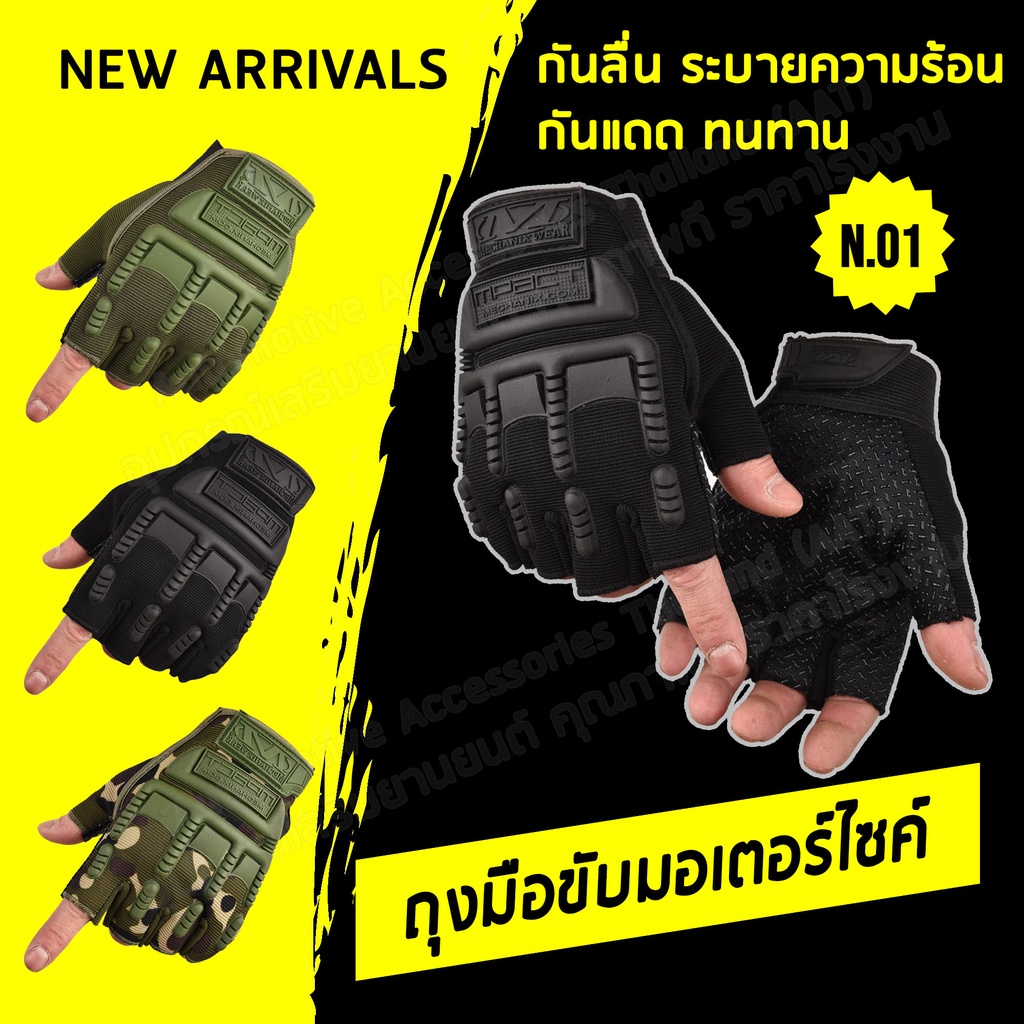 ถุงมือขี่มอเตอร์ไซค์ครึ่งนิ้วแบบฟรีไซส์ กันกระแทก กันลื่น ผ้าหนัง ขับรถ ถุงมือขับมอเตอร์ไซค์ (4 สี)