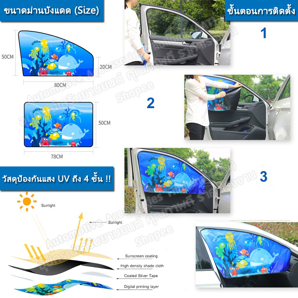 [ลด15%โค้ด15DD99] AATม่านบังแดดลายการ์ตูนกันUVรถยนต์แบบแม่เหล็กติดขอบประตู แผ่นบังแดดในรถยนต์หนา 4 ชั้น