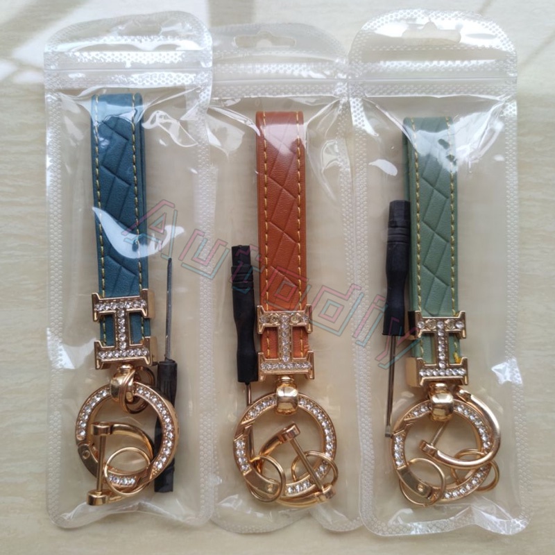 พร้อมส่ง พวงกุญแจเชือกหนัง จี้เพชร รูปตัว H สร้างสรรค์ ระดับไฮเอนด์ สําหรับแขวนกระเป๋า เด็กผู้หญิง ของขวัญ รถยนต์