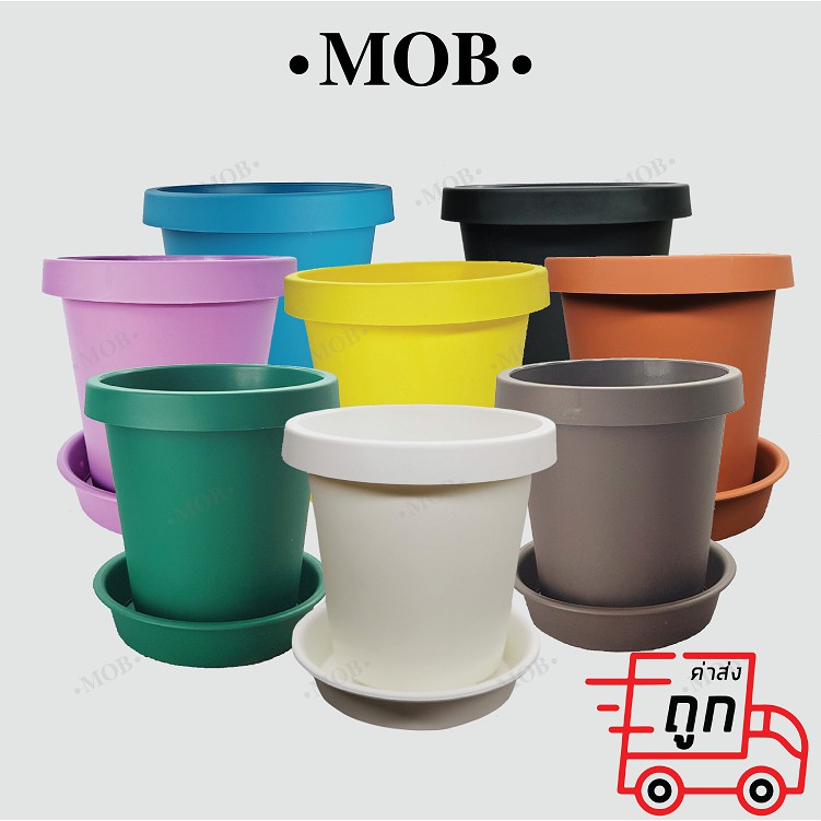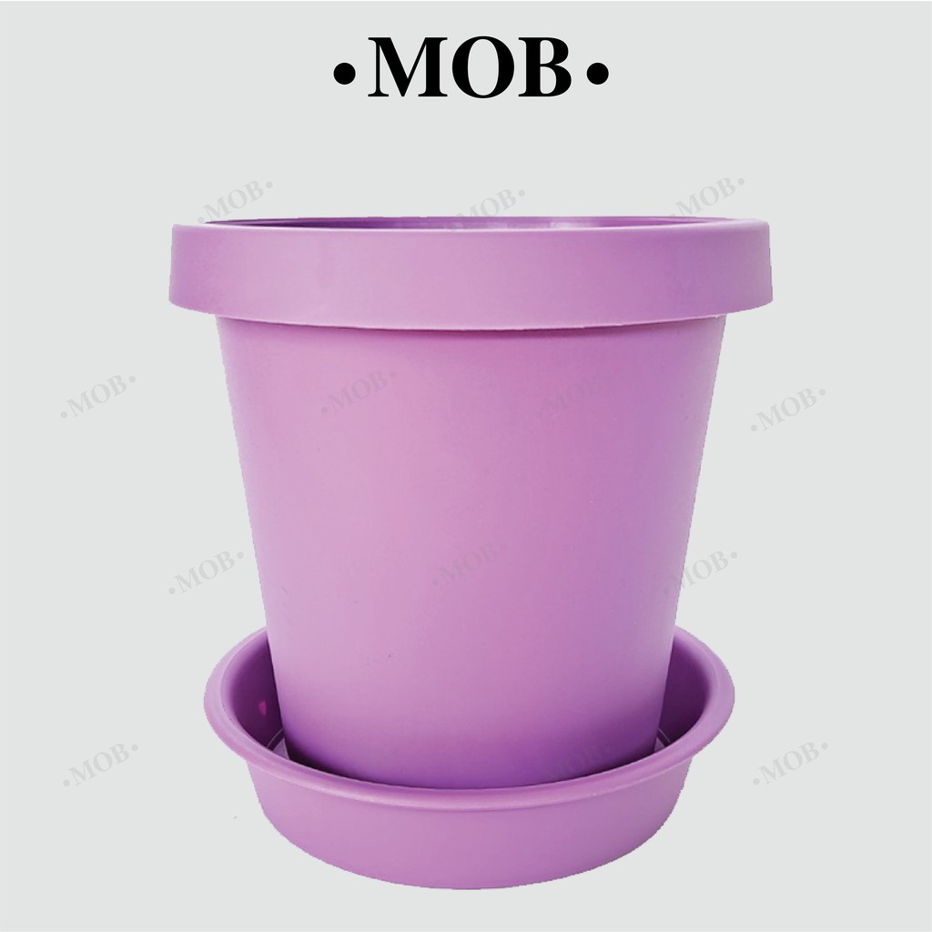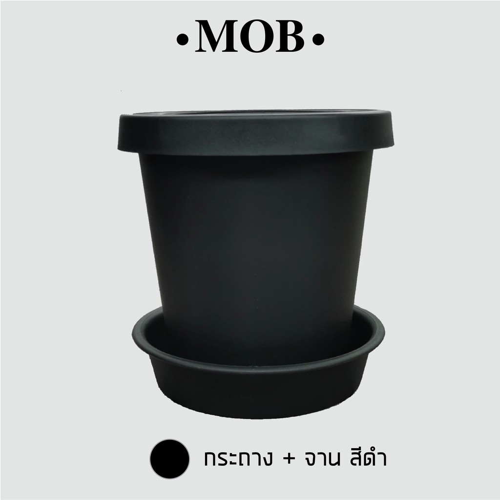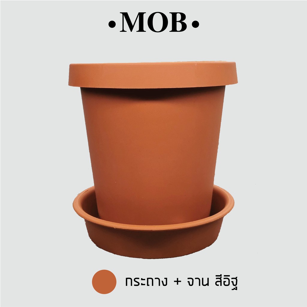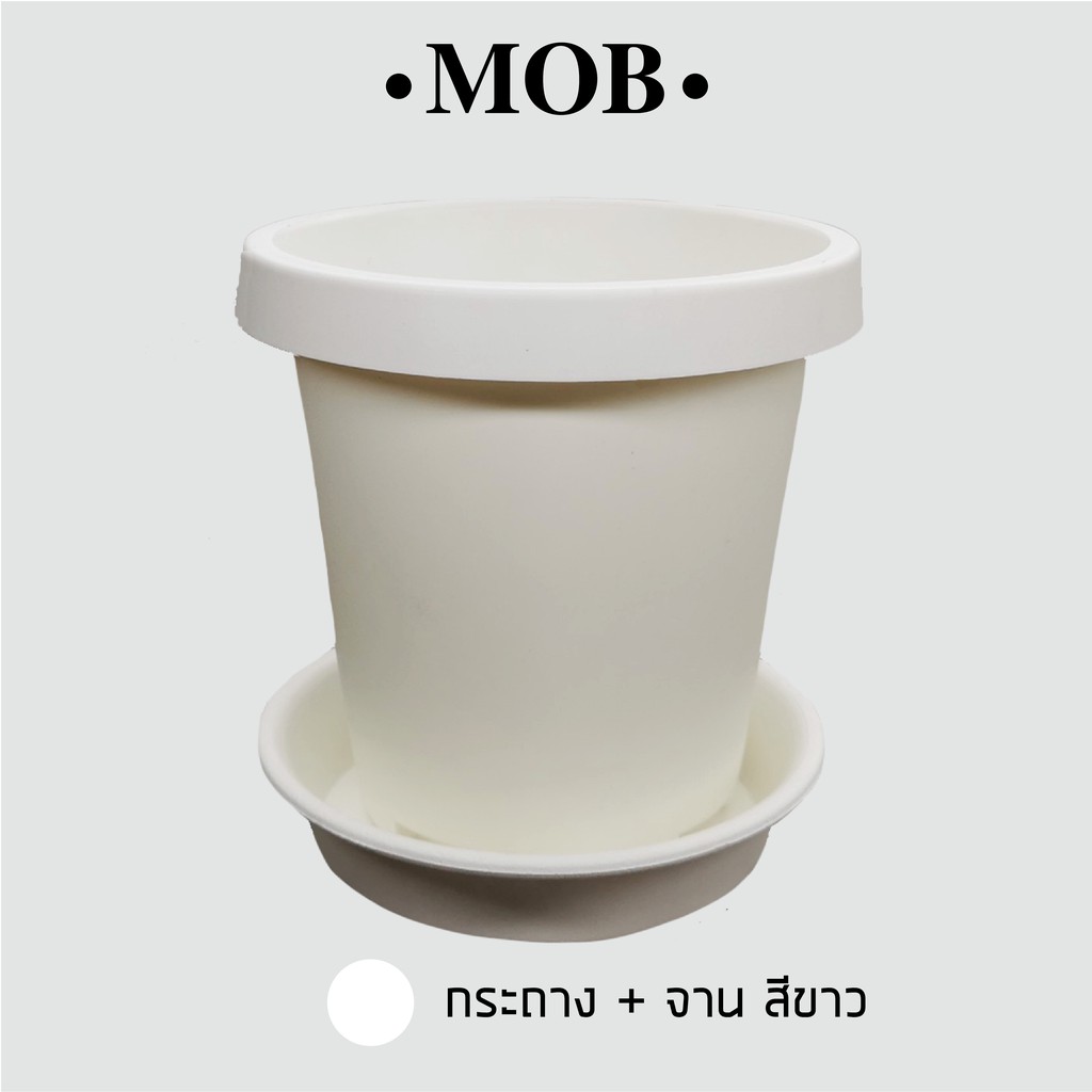 MOB กระถาง 6 นิ้ว ทรงสูง เนื้อด้าน กระถางพร้อมจานรอง ปากกลม พับขอบ ขอบพับ